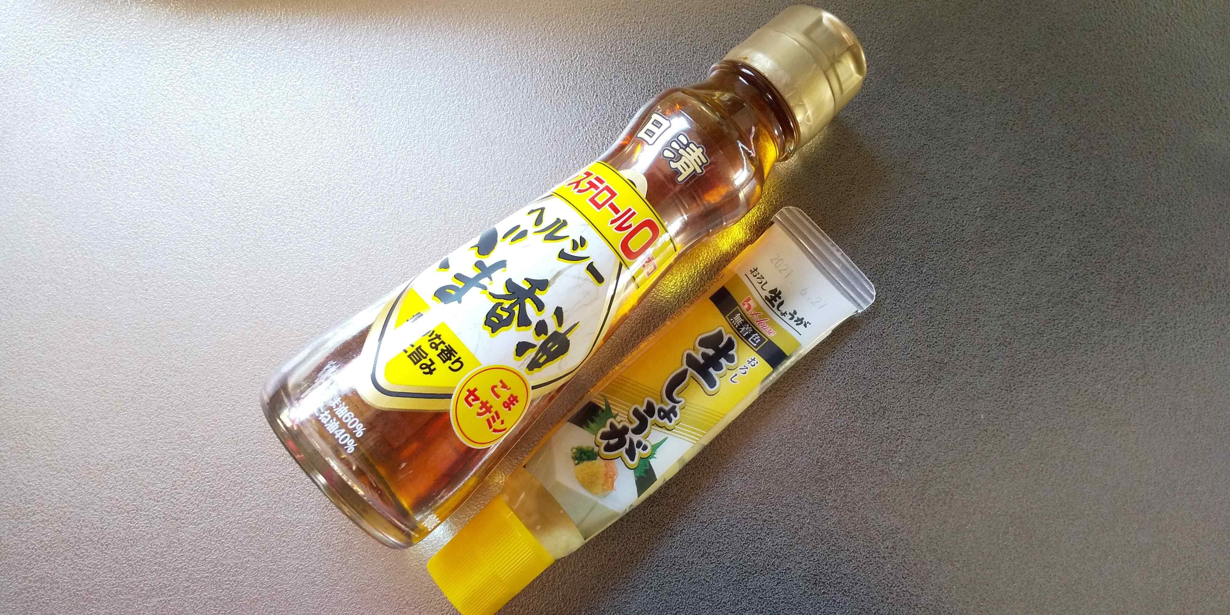●すりおろししょうが1㎝弱と、●ごま油を数滴、仕上げに加えることに。