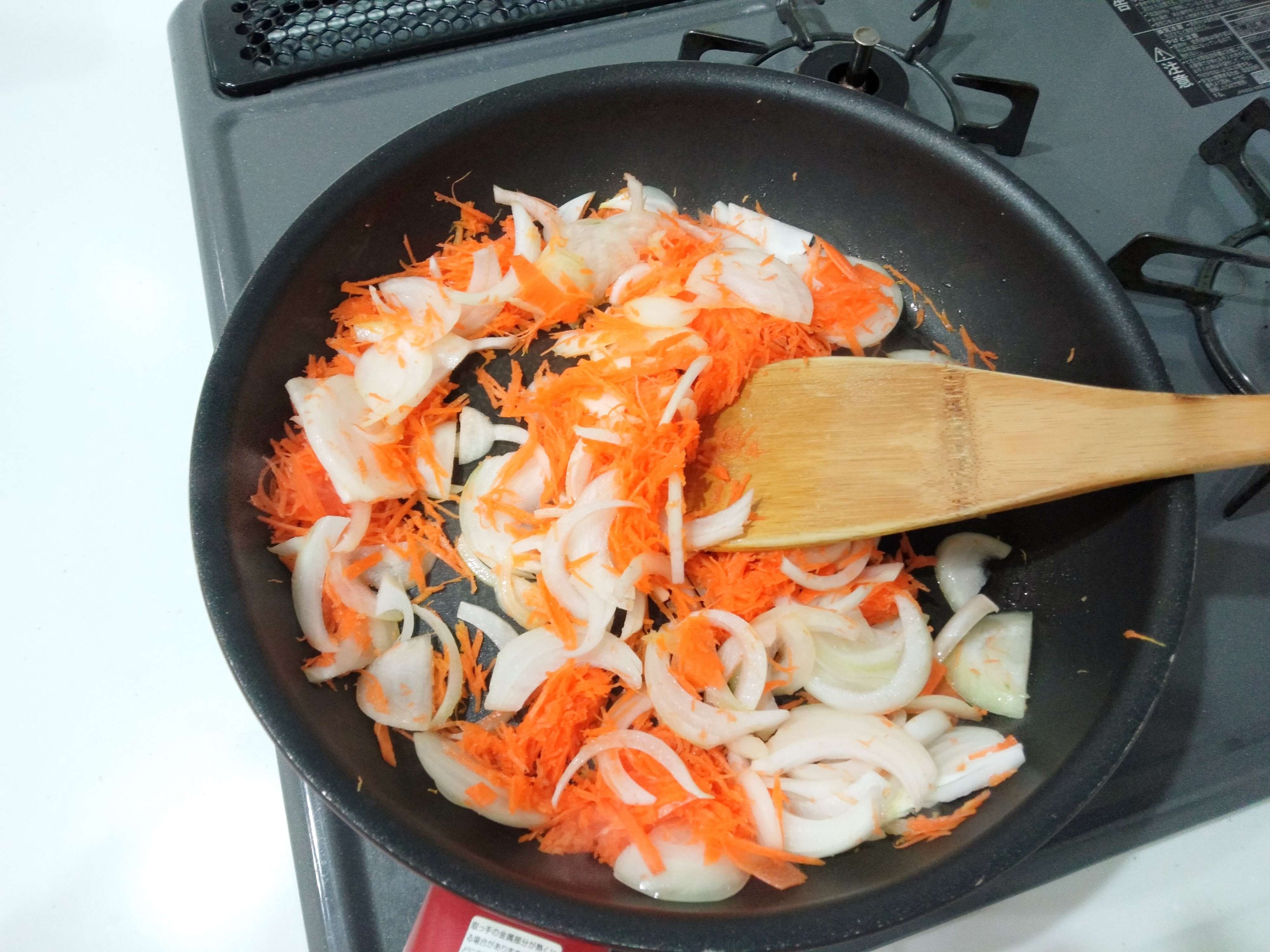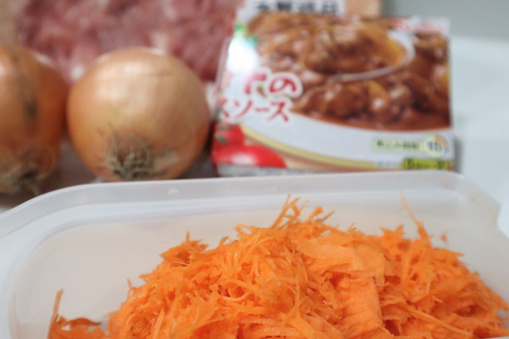 玉ねぎ半分をにんじんの千切りに置き換える
