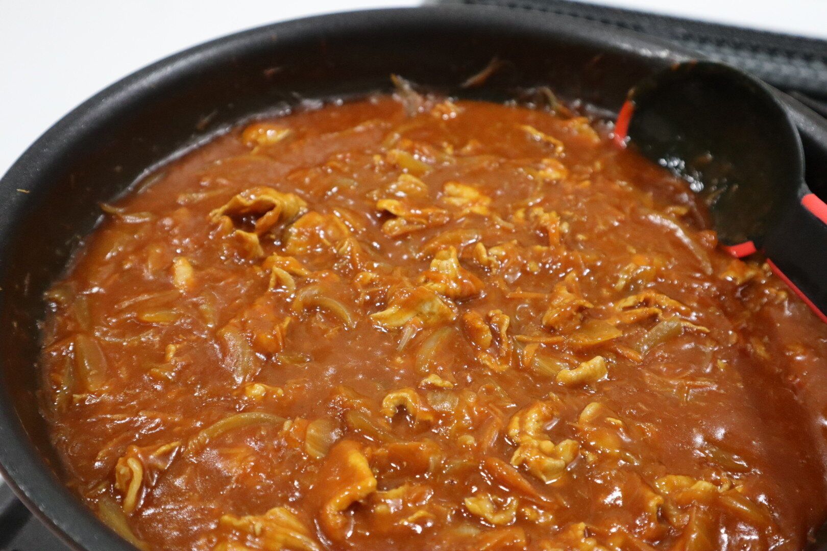 千切りのにんじんはすぐに火が通るので、ルーを入れる直前や、ルーを入れてからにんじんを投入しても十分おいしく食べられるのですが、玉ねぎと一緒に炒めることで、より多くの栄養を取り入れることができます。