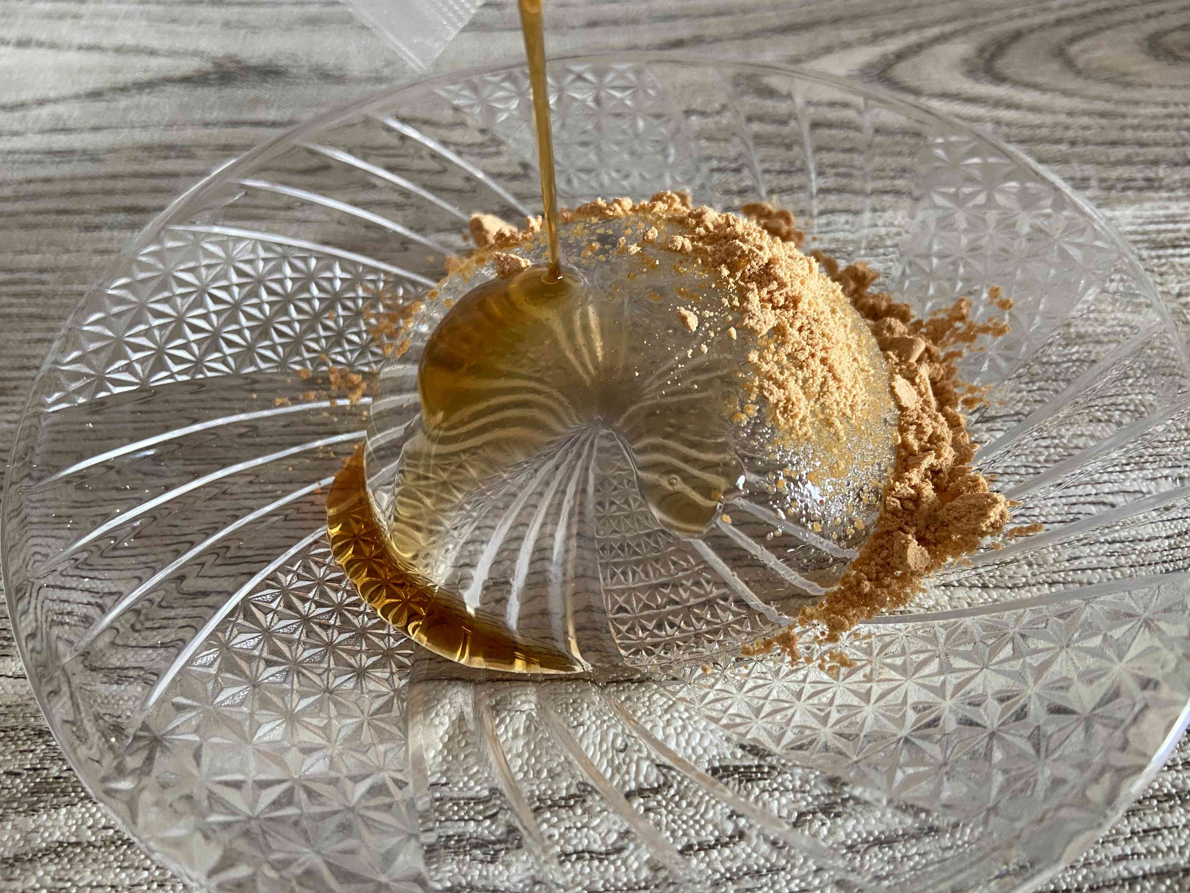 これ和菓子なの!?と半信半疑になってしまう見た目でしたが、食べるとしっかりわらび餅!もっちりぷるんとしてほんのり甘みのある水わらび餅にきなこと黒蜜の風味がたまりません。