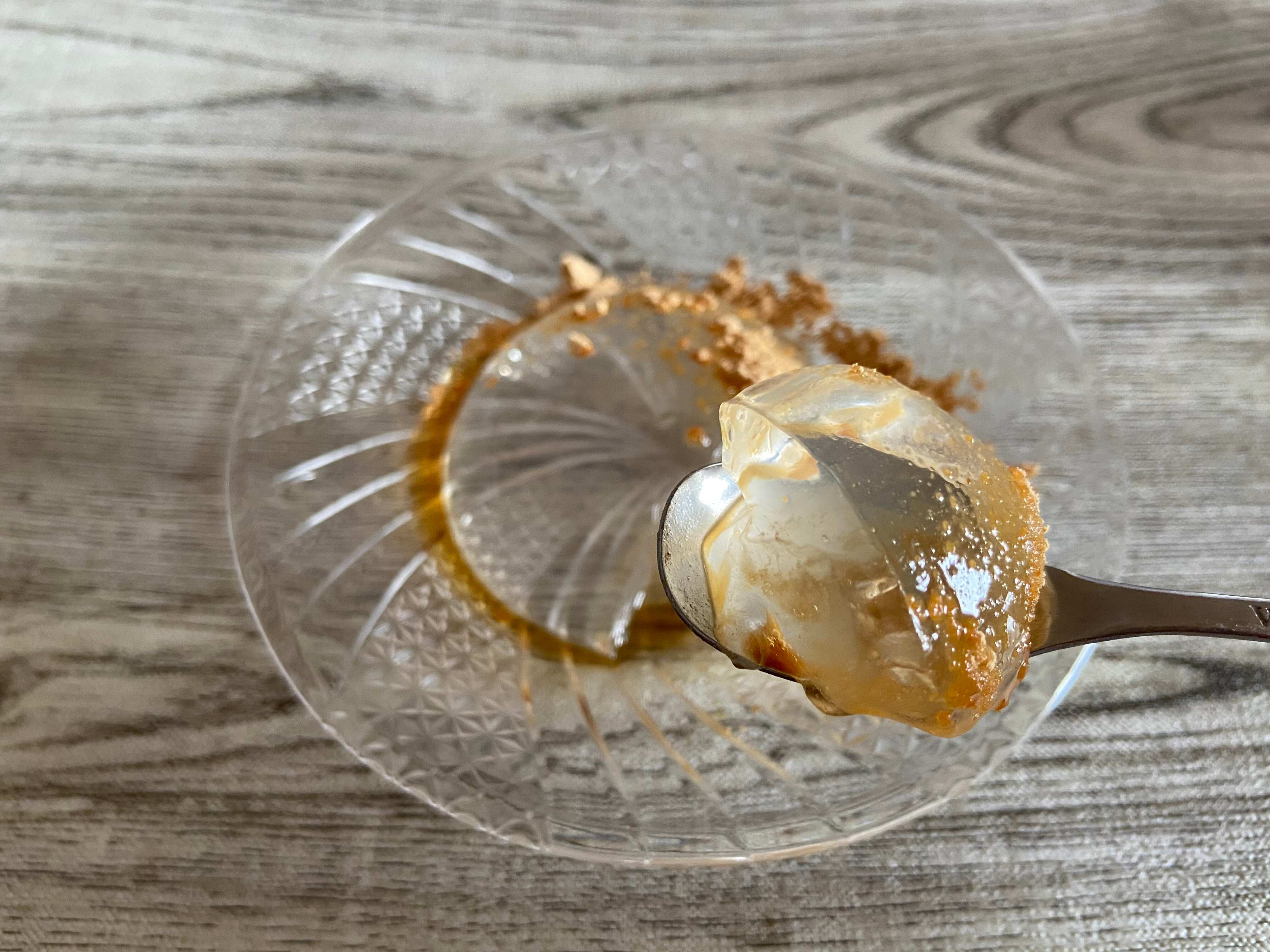 カップから出し、お皿にのせました。ガラス皿をチョイスしてみましたが、模様がくっきりと出てお皿と同化し、なんだかアート作品のようです。