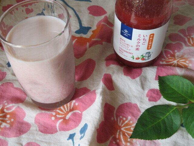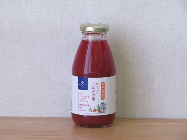 瓶に書かれた説明によると、いちごミルクの素と牛乳を1:2の割合で割って飲むとのことでした。