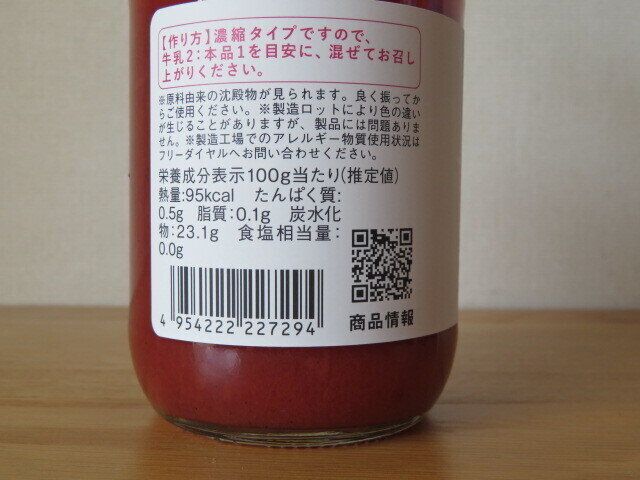 試しに原液をティースプーン1杯だけ口に入れてみたところ、いちごジャムのような味がしました。