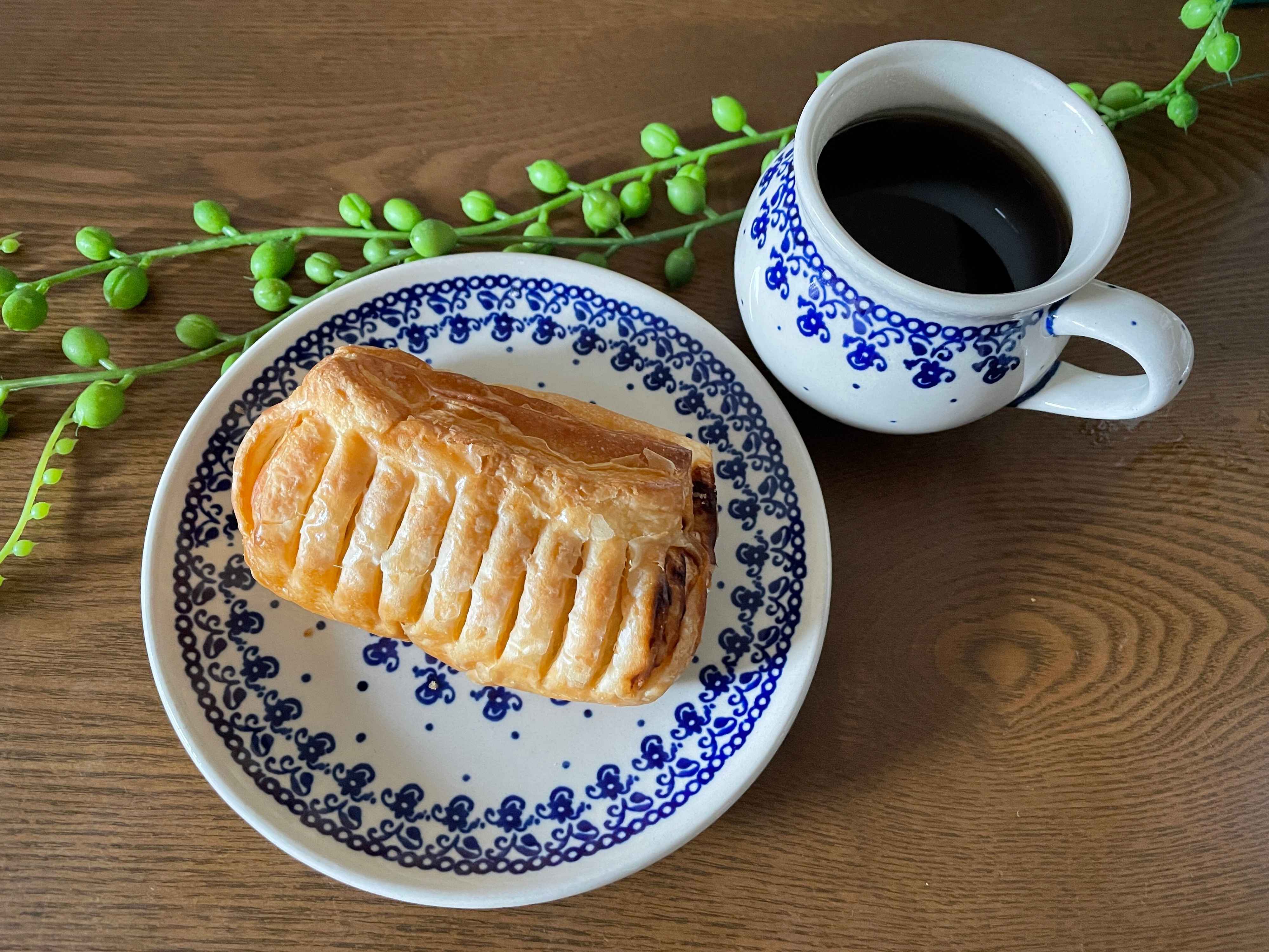 半分はそのままで、残りはトースターであたためて食べてみたのですが、そのままではしっとりとした食感を、あたためるとサクッとしたパイのような食感が楽しめます。