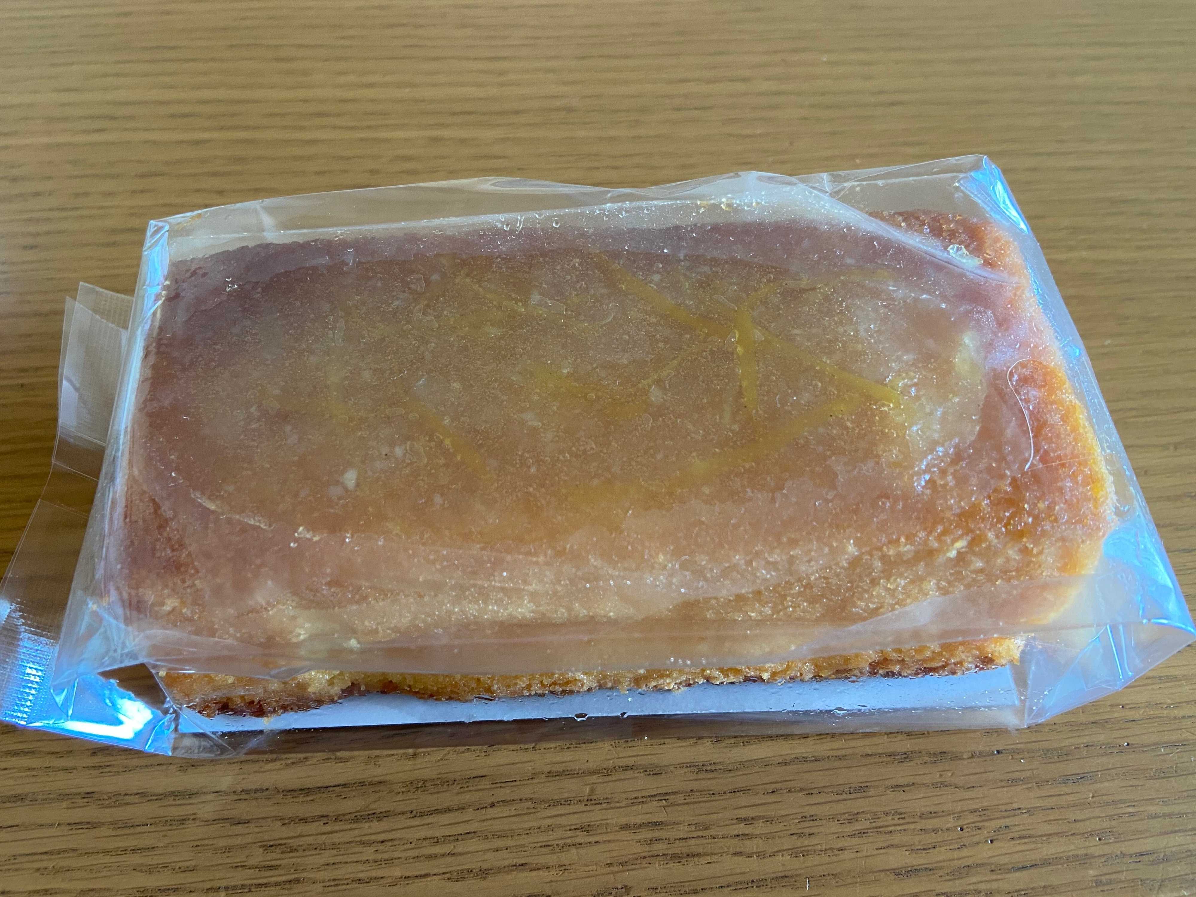 袋を開けてみると、パウンドケーキ生地にはたっぷりと瀬戸内レモンジャムが塗られています。レモンピールもトッピングされていますね。