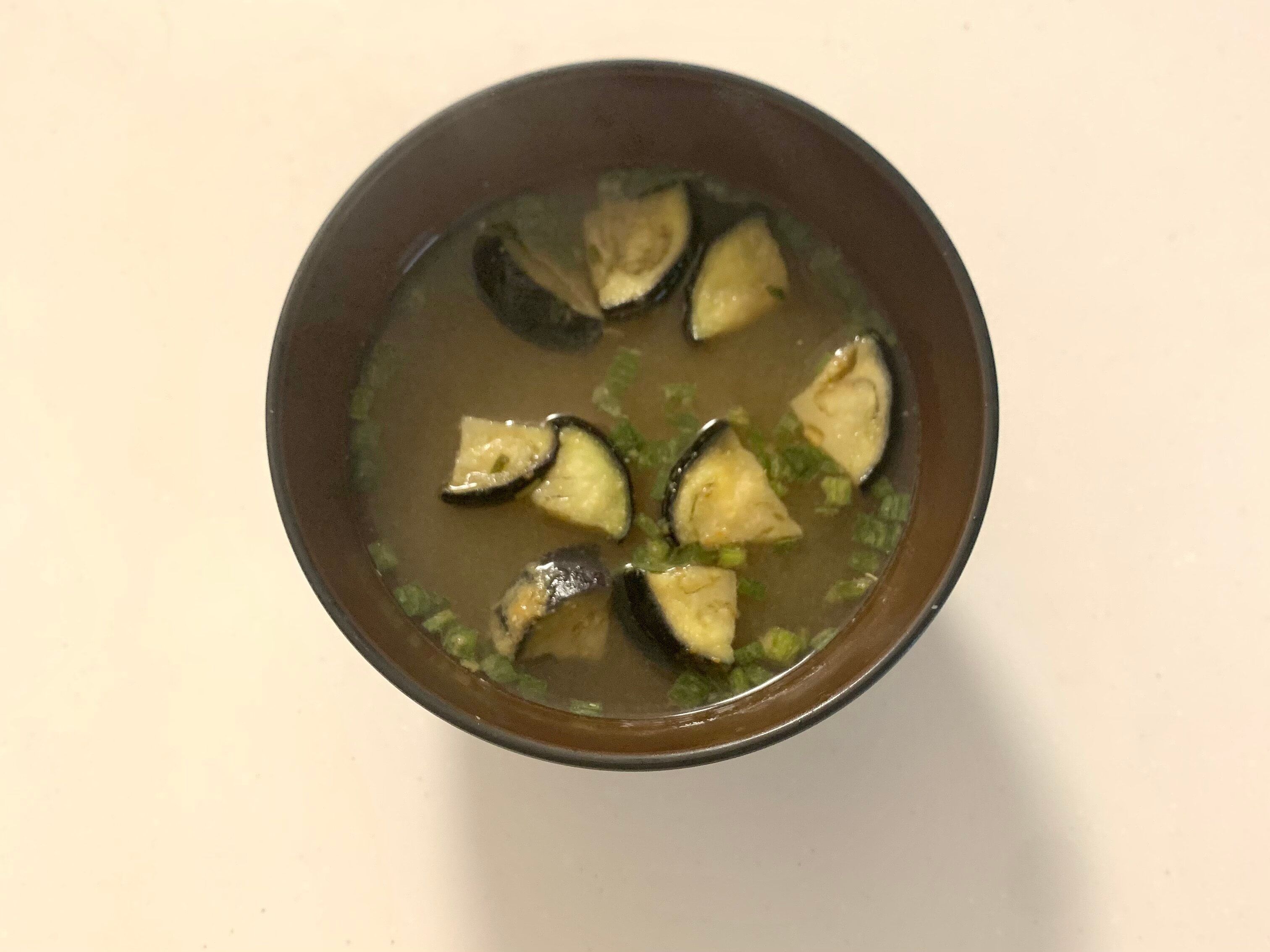 揚げなす、ワカメ、小ネギがたくさん入っています。出汁もしっかり効いていて美味しい!