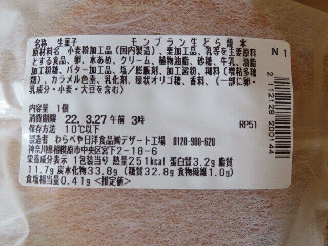 熱量251kcalと、モンブラン入りにしてはひかえめです。