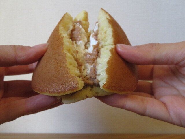 上から見た感じでは、普通のどら焼きに見えるこの商品。