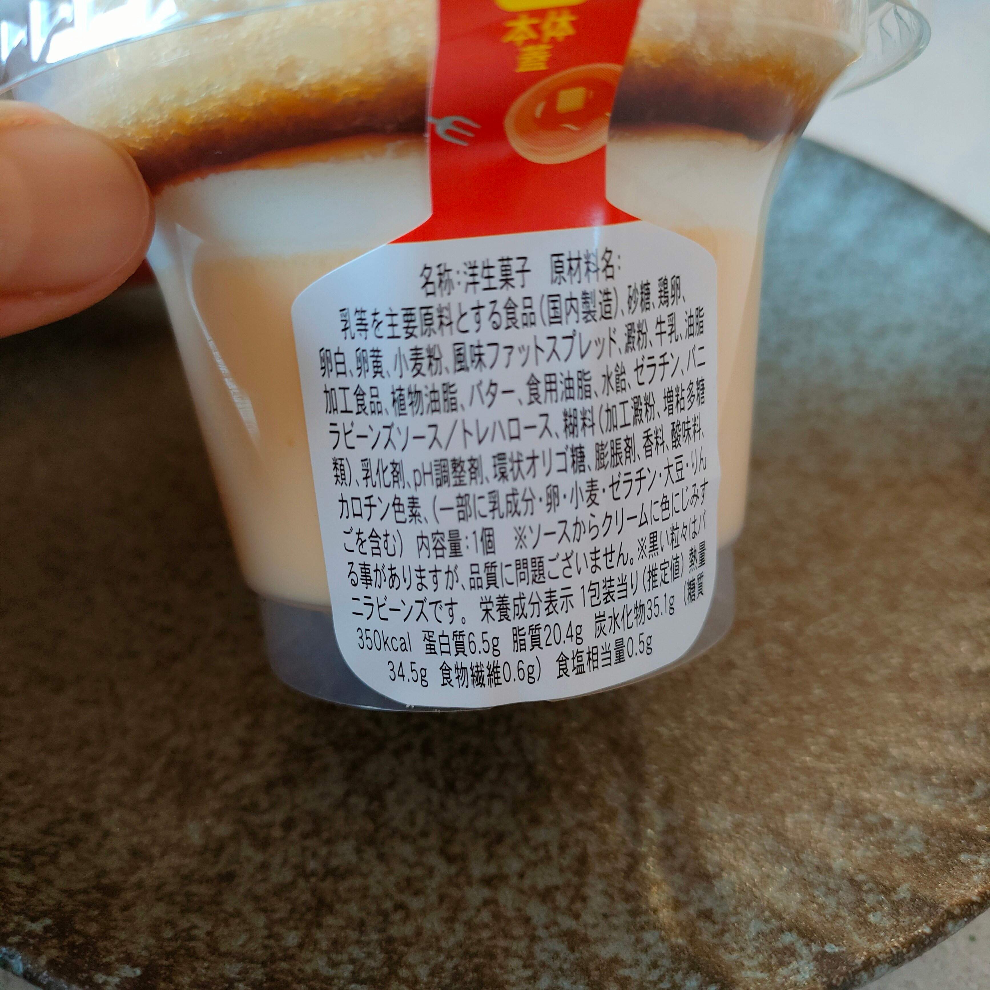 順番としては、カスタードプリン、ホイップ、カラメルソース、スフレ、バタークリームとなっています。きれいな層になっていますね。もうちょっとカラメル部分があったら嬉しいです。
