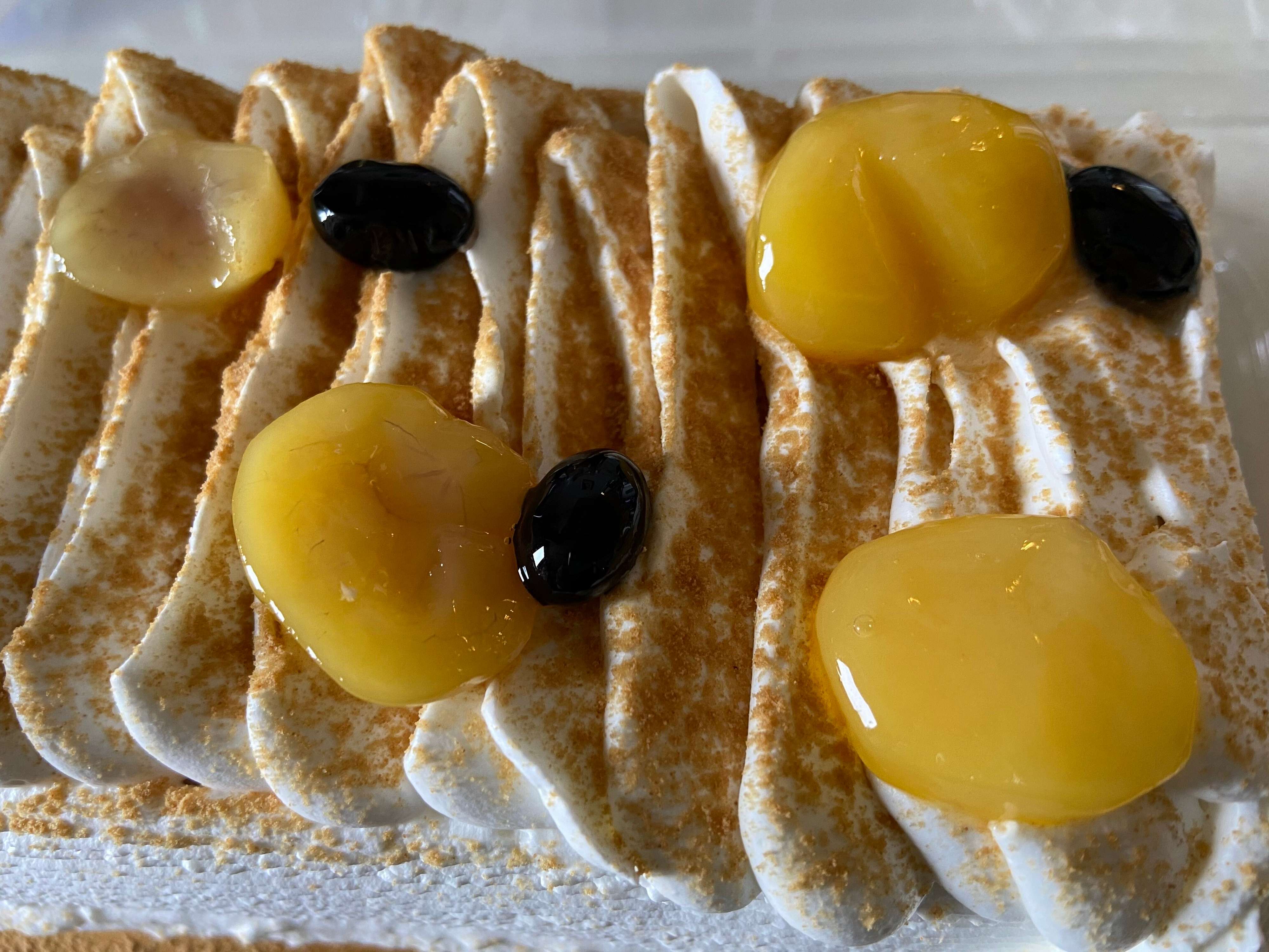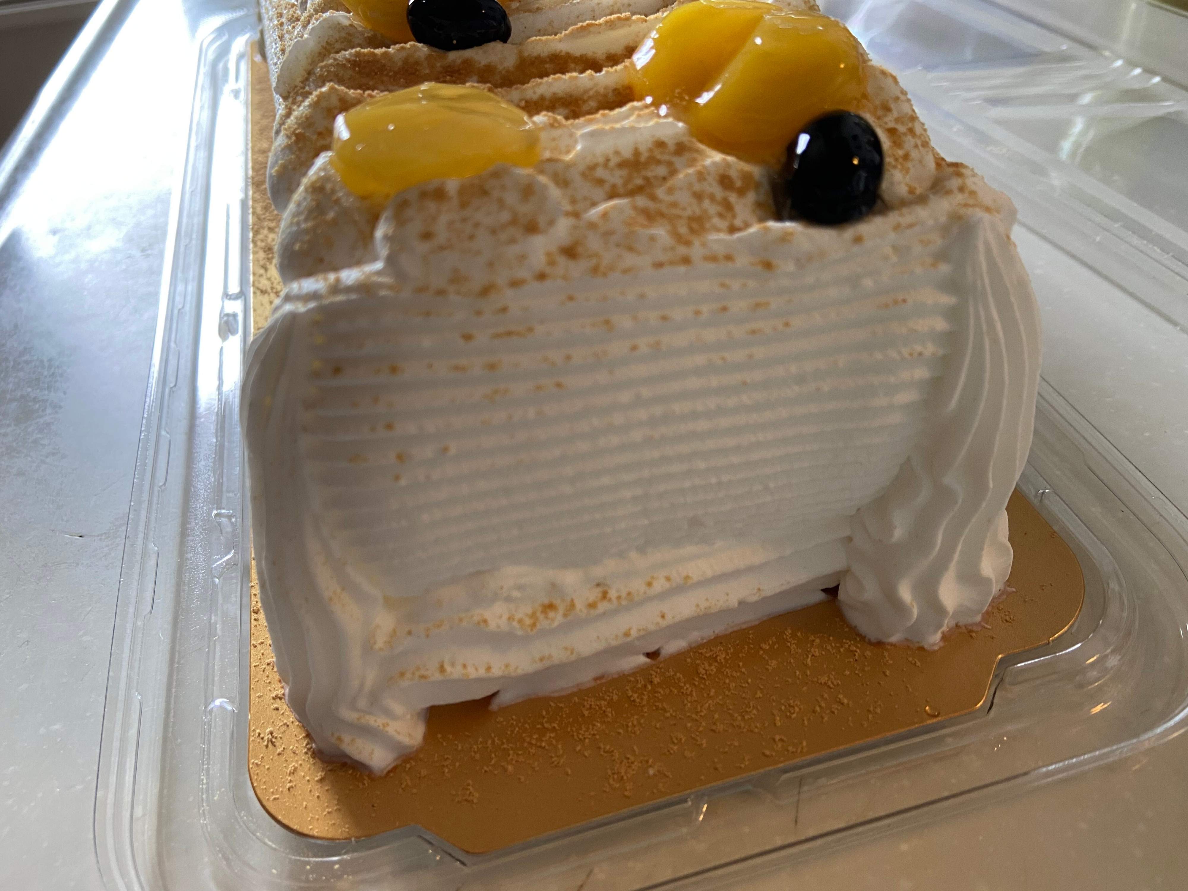食べてみると、スポンジはふんわり軽くて全体的に甘さは控えめ、とっても優しい味わいのケーキ!!黒糖の風味もきな粉の風味もほんのり香る程度で主張は強すぎず、上品に仕上がっています。大きなケーキだから甘さがくどいと食べ切るのに苦労しますが、これは素朴な優しい味わいで子どもから大人までとっても食べやすいケーキ。