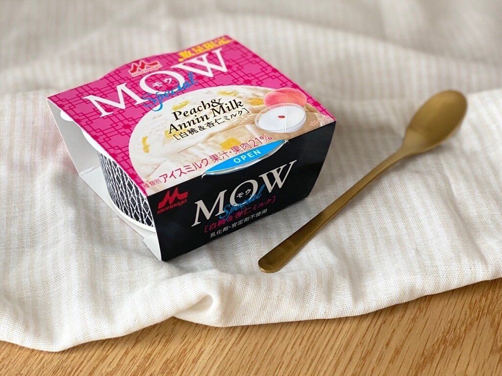 定番のMOWの濃厚さを残しつつ、上品な味わいに仕上げられたMOWスペシャル「白桃&杏仁ミルク」。白桃の果肉が贅沢に入った、ちょっぴりリッチなアイスでした。