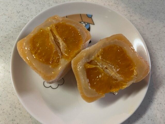オレンジの求肥ももちもちやわらかい。