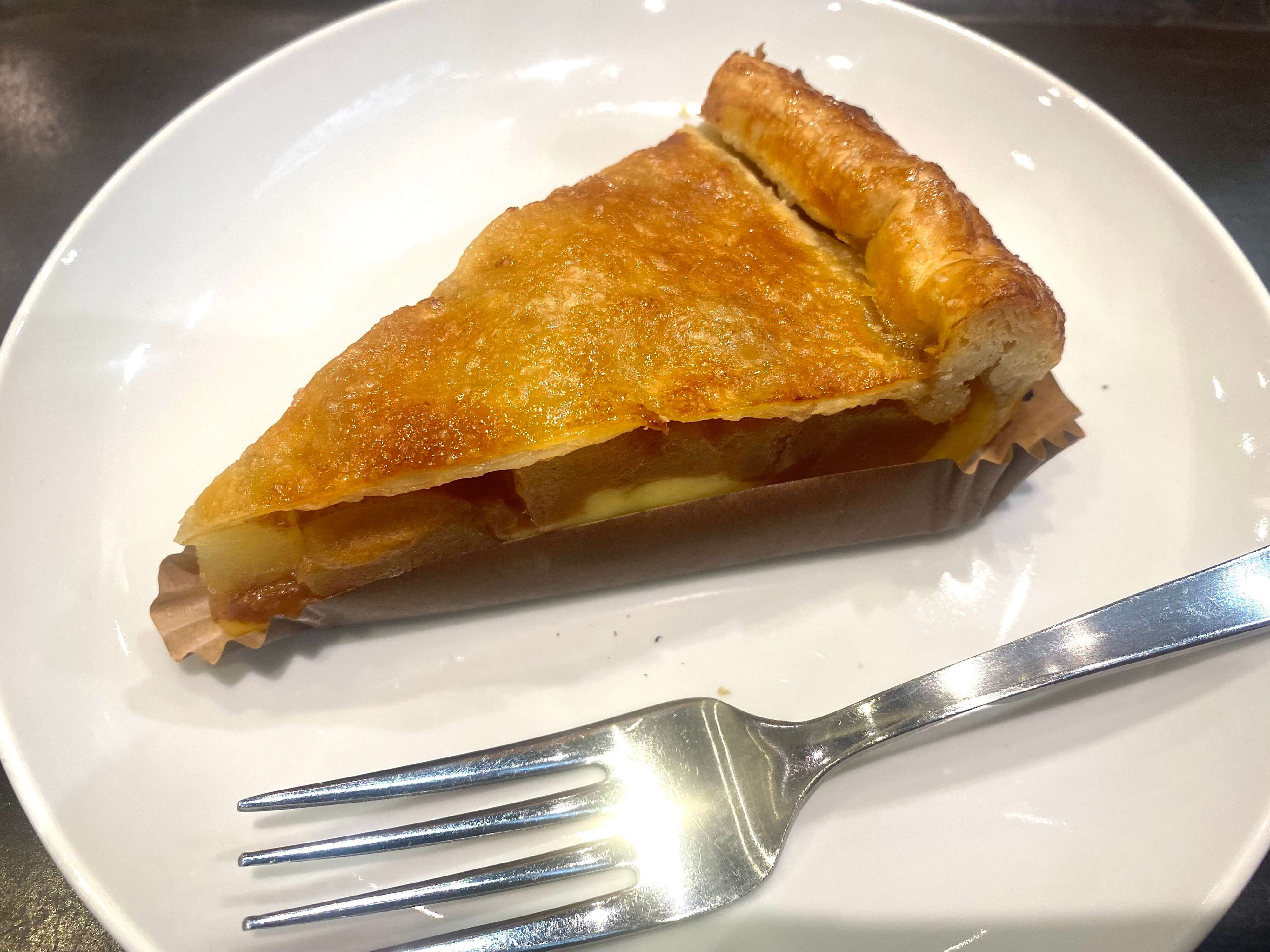 薄めのパイ生地にトロトロの甘いカスタードとシナモンがきいたアップルが
