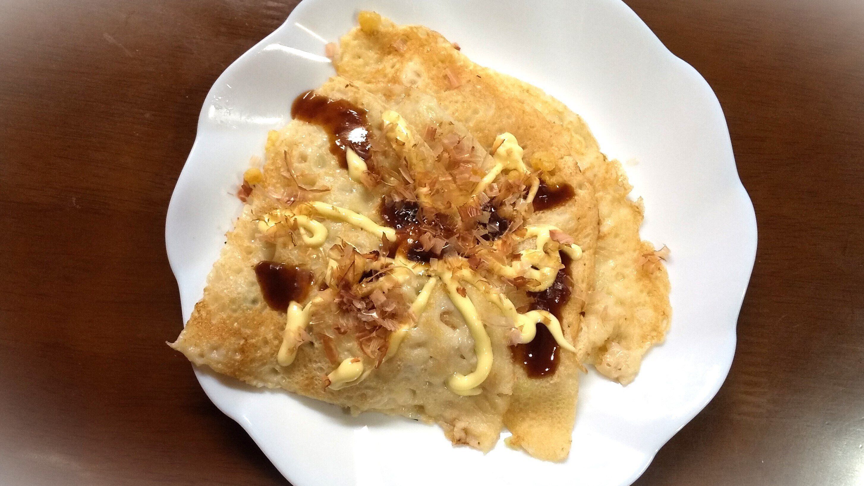 見た目はガレットのような仕上がりで、まさかタコ焼き生地を使ったとは思えません。