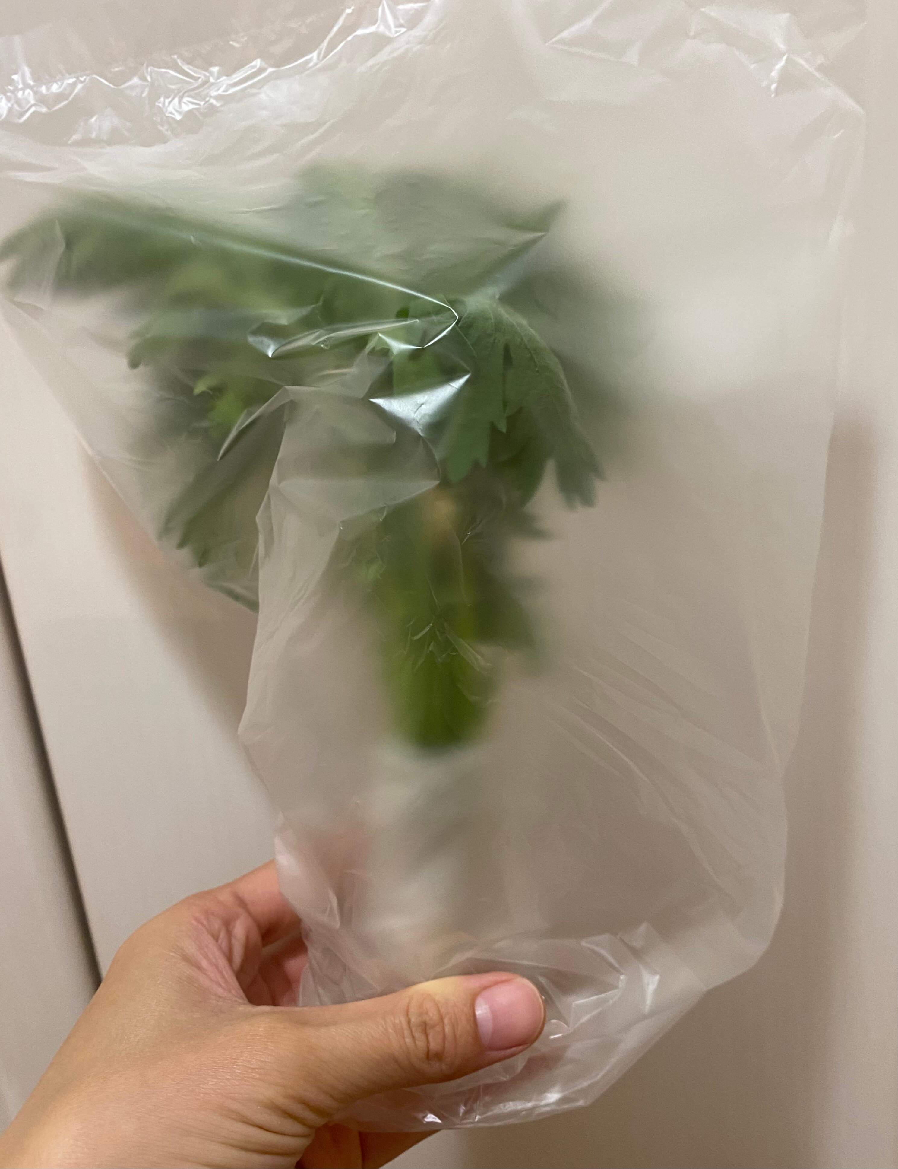 他の葉野菜と同じですが、乾燥を防ぐために全体を袋や新聞紙などで覆い、