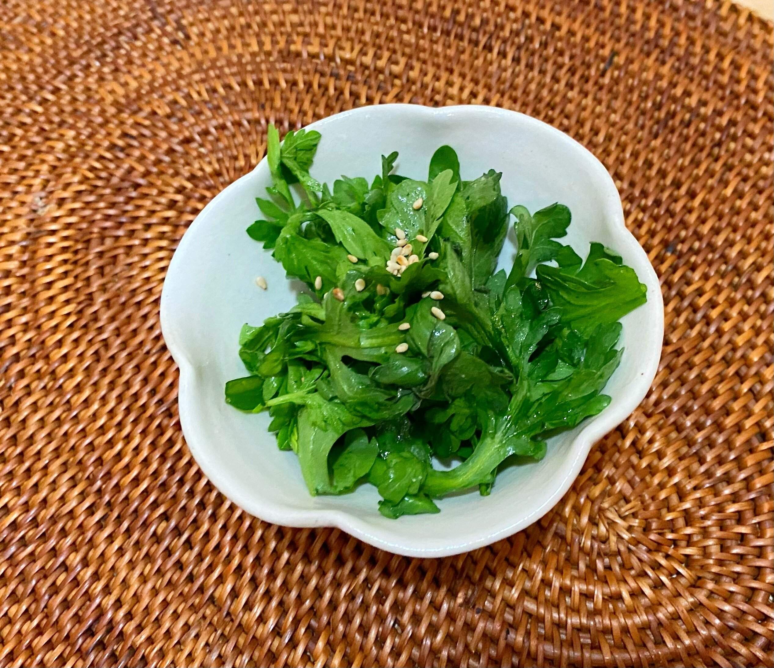 ごま油の香りと春菊の風味がとてもよく合います。