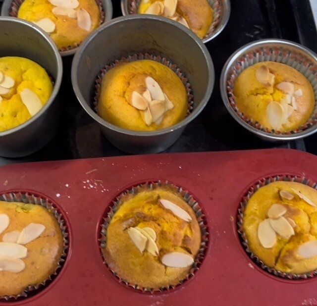 マフィンカップ12個分位できます。少なく作る場合は半分の材料でも作れます。