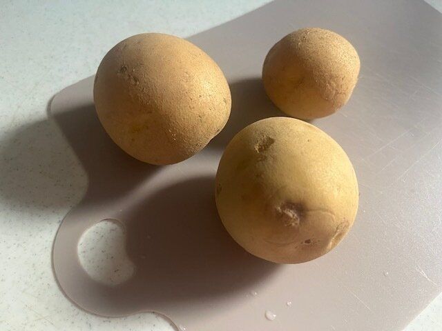 じゃがいもを用意します。26㎝ほどのフライパンならじゃがいも大3つ位あれば作れます。