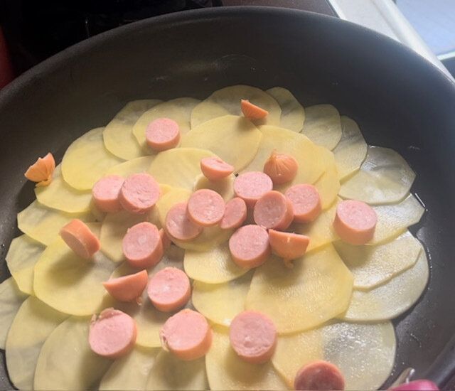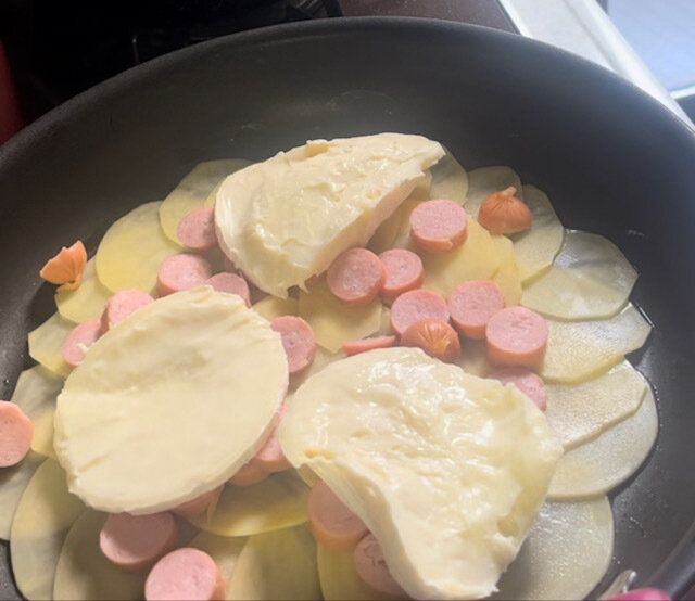 じゃがいもの上にウインナーなどを並べていきます。好きな具でOK!