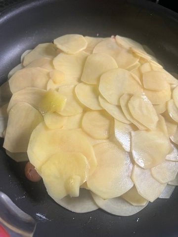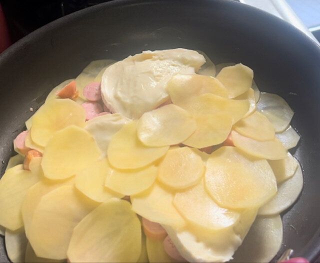 その上にさらにスライスしたじゃがいもをのせフタをします。