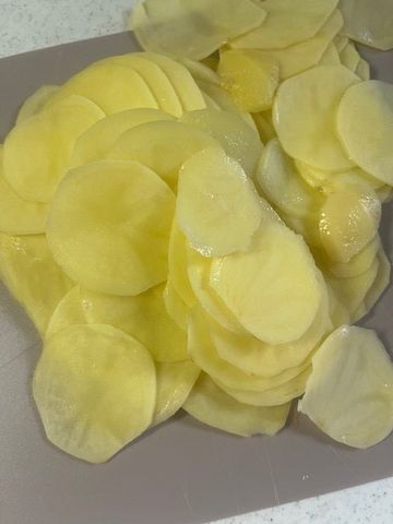 じゃがいもをスライスしていきます。包丁で切っても良いのですが