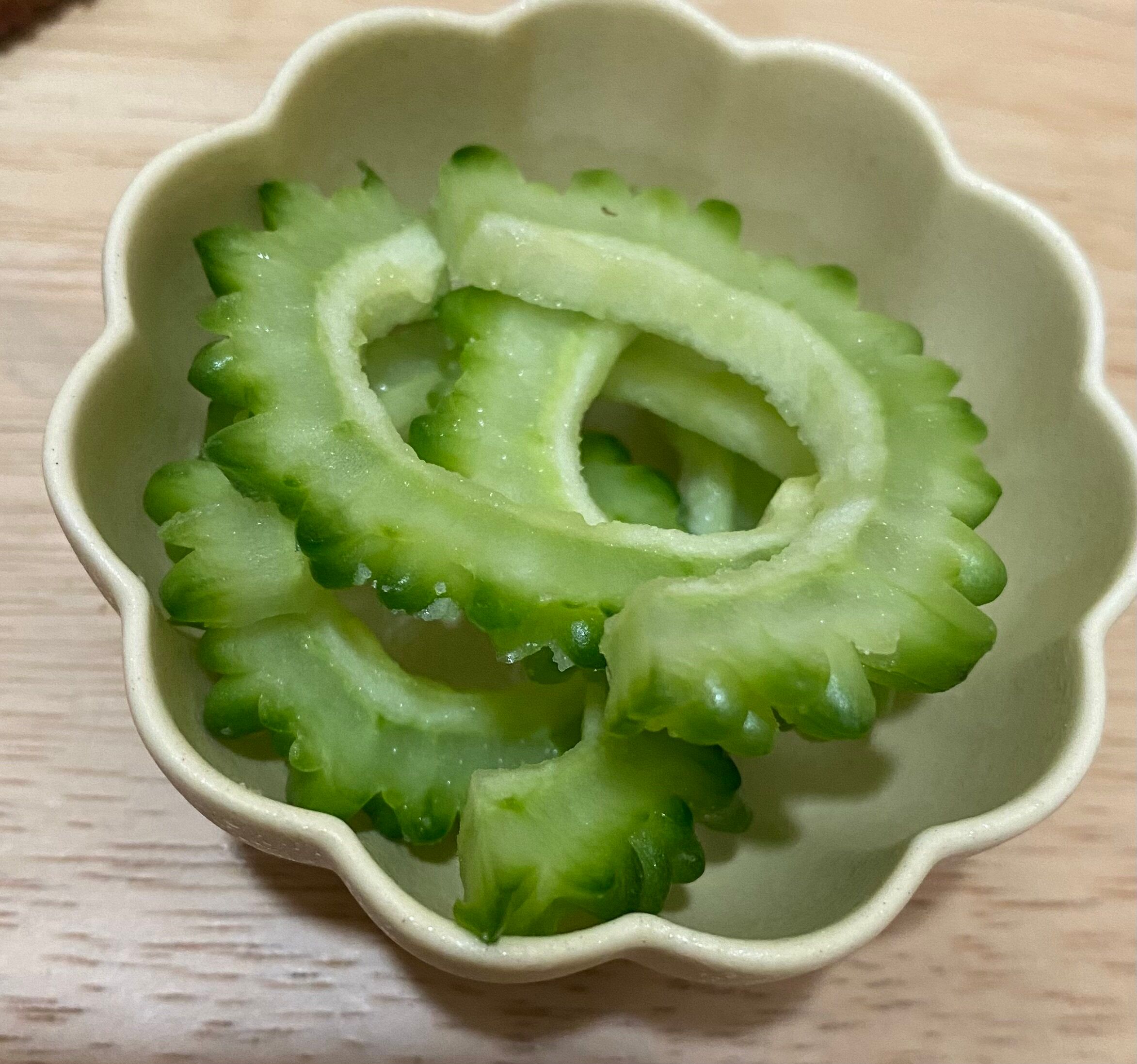 数時間後漬ければ程よい苦味が楽しめ、1〜2日漬け込めばほぼ苦味は感じないくらいになります。ゴーヤが苦手な方にもオススメのレシピです。