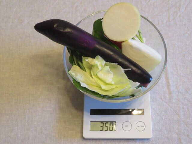 きっちり350グラム計量するのが面倒なら、料理の前に使う野菜の重さを量るだけでも意味があるでしょう。