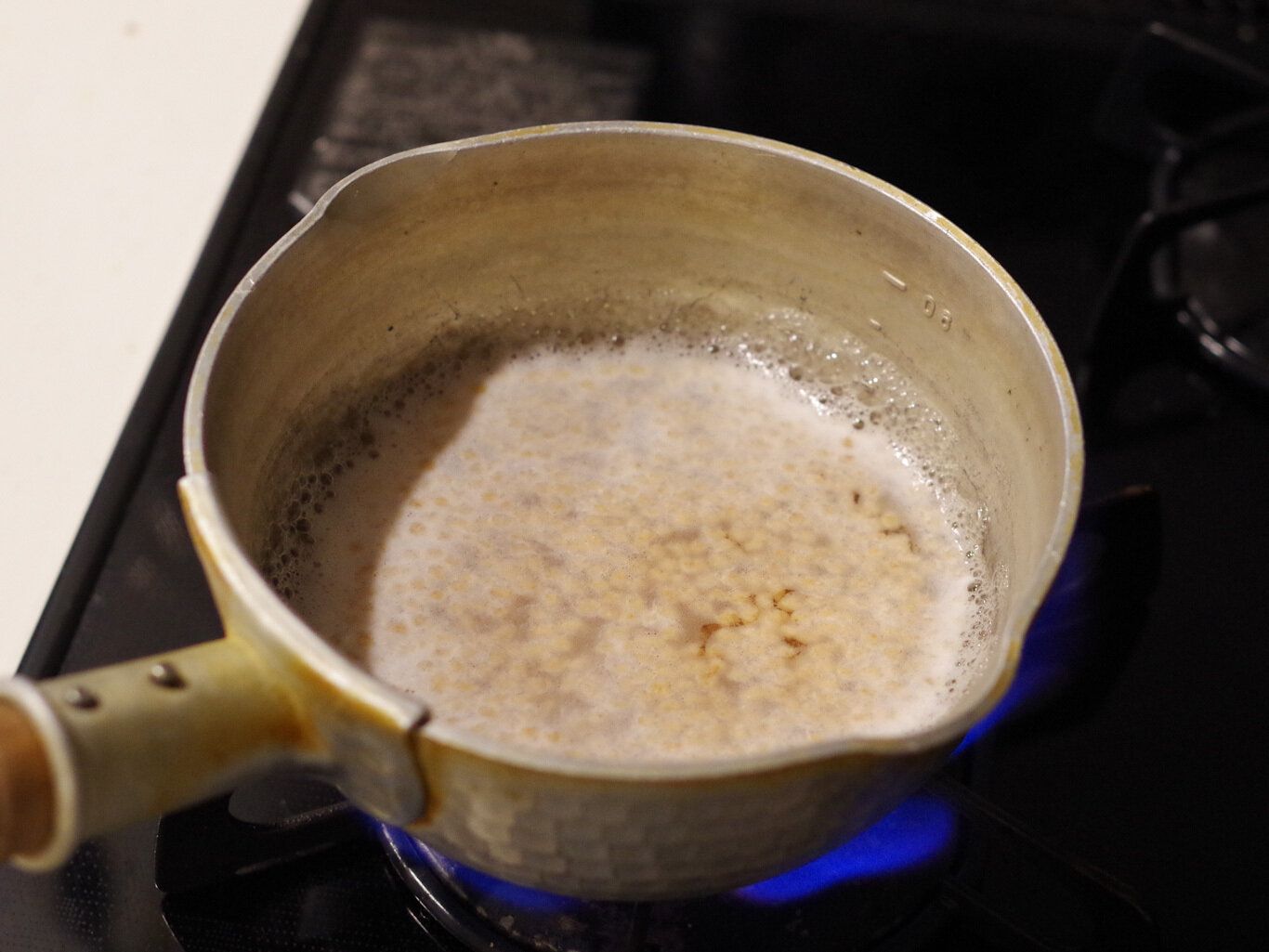 お湯で戻すと、ふわーっと泡が出てきます。香りは、大豆そのもの!