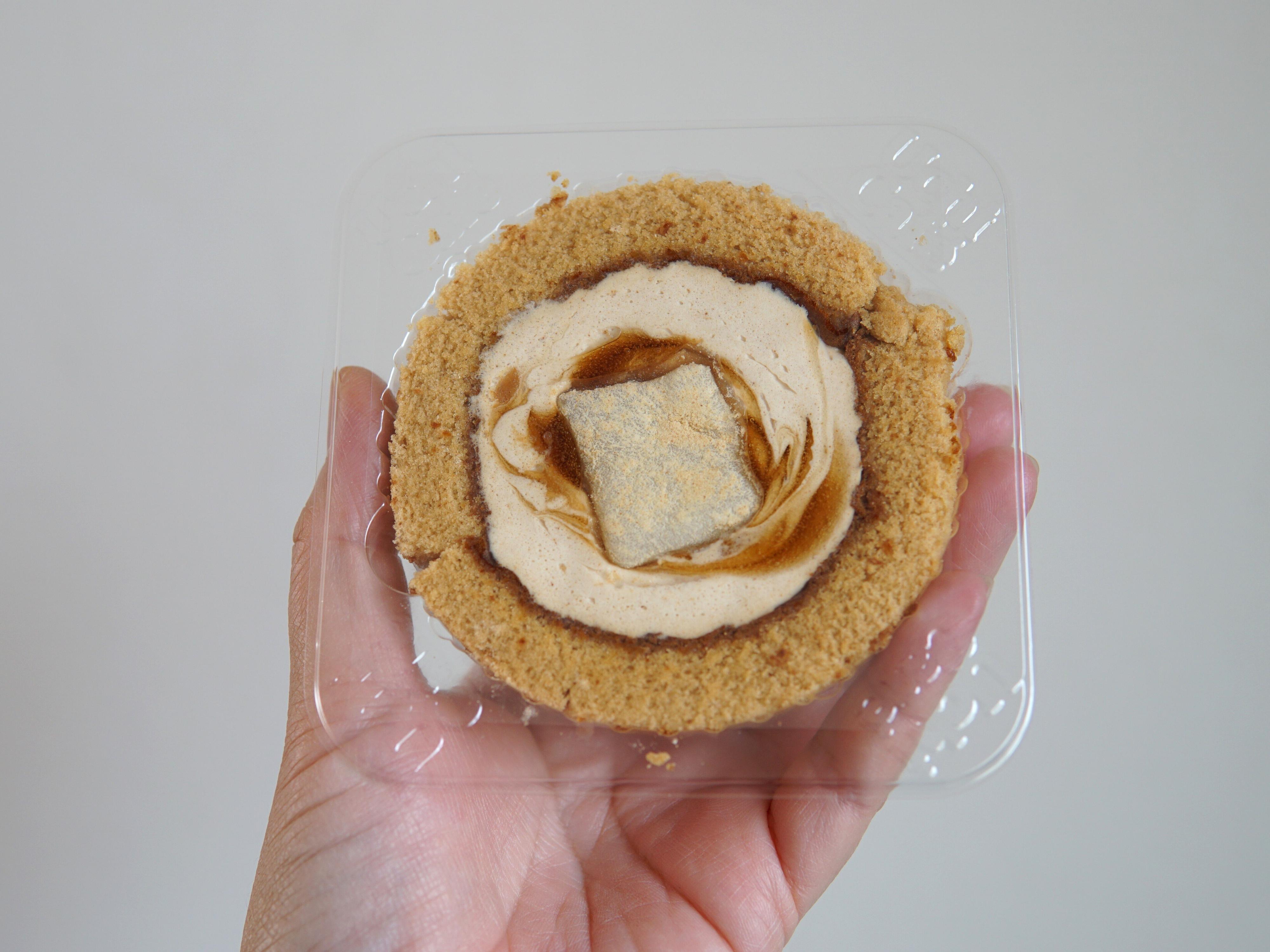 こちらのロールケーキも、濃厚な味わいの黒蜜ソース、2種類の北海道産生クリームや深煎りきな粉などを使用したきなこクリーム、そしてもっちり食感の求肥の3種を、いずれも北海道産の小麦粉やビートグラニュー糖に生クリーム、さらに深煎りきな粉を配合した生地で巻いた和洋折衷なロールケーキとなっています。