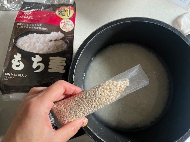 白米に対して入れたい割合いで「もち麦」と水を入れてあとは普通に炊くだけ。