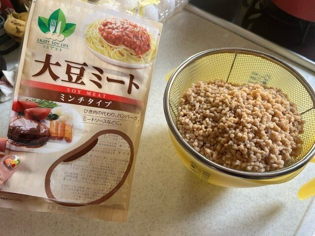 全部一気に使うことにしました。ぽろぽろ乾燥していた大豆ミートが茹でることによって膨らみました。