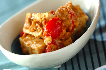 豆腐には女性ホルモンと似た働きをするイソフラボンが含まれ、トマトのリコピンには抗酸化作用・美肌効果もあり、女性がとりたい栄養素が詰まったレシピです。