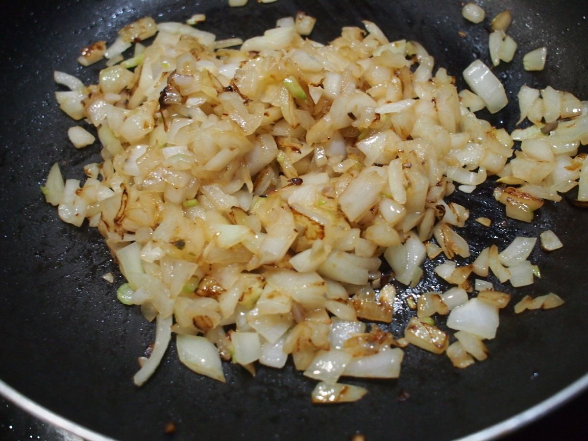 ポイント2:玉ねぎを粗みじんにして炒めます
