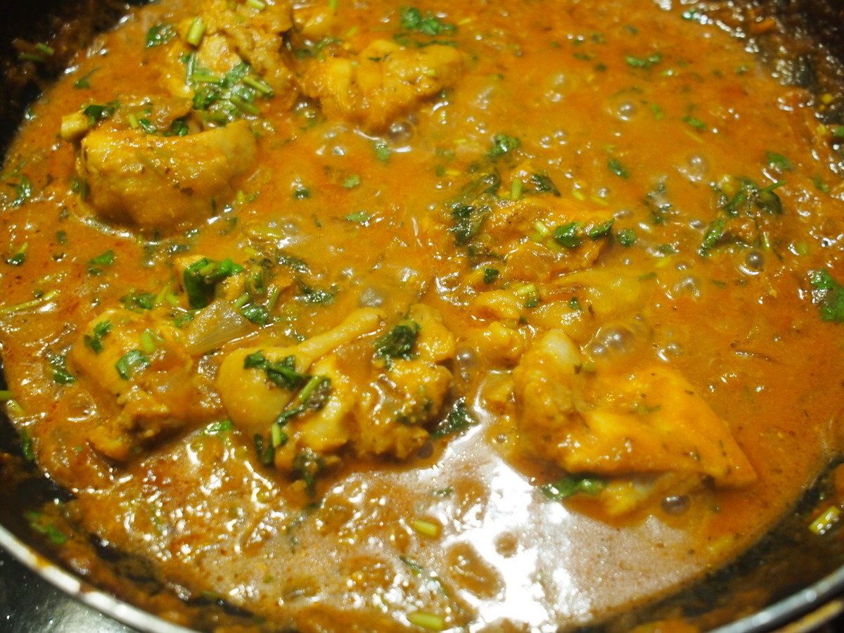 ヨーグルトにつけ込んでいない場合は、鶏もも肉と入れたあとでヨーグルトを加えてください。さらに水200ccを加えて、弱火で15分。最後に刻んだパクチーを入れればでき上がりです。パクチーはなくてもOKです。