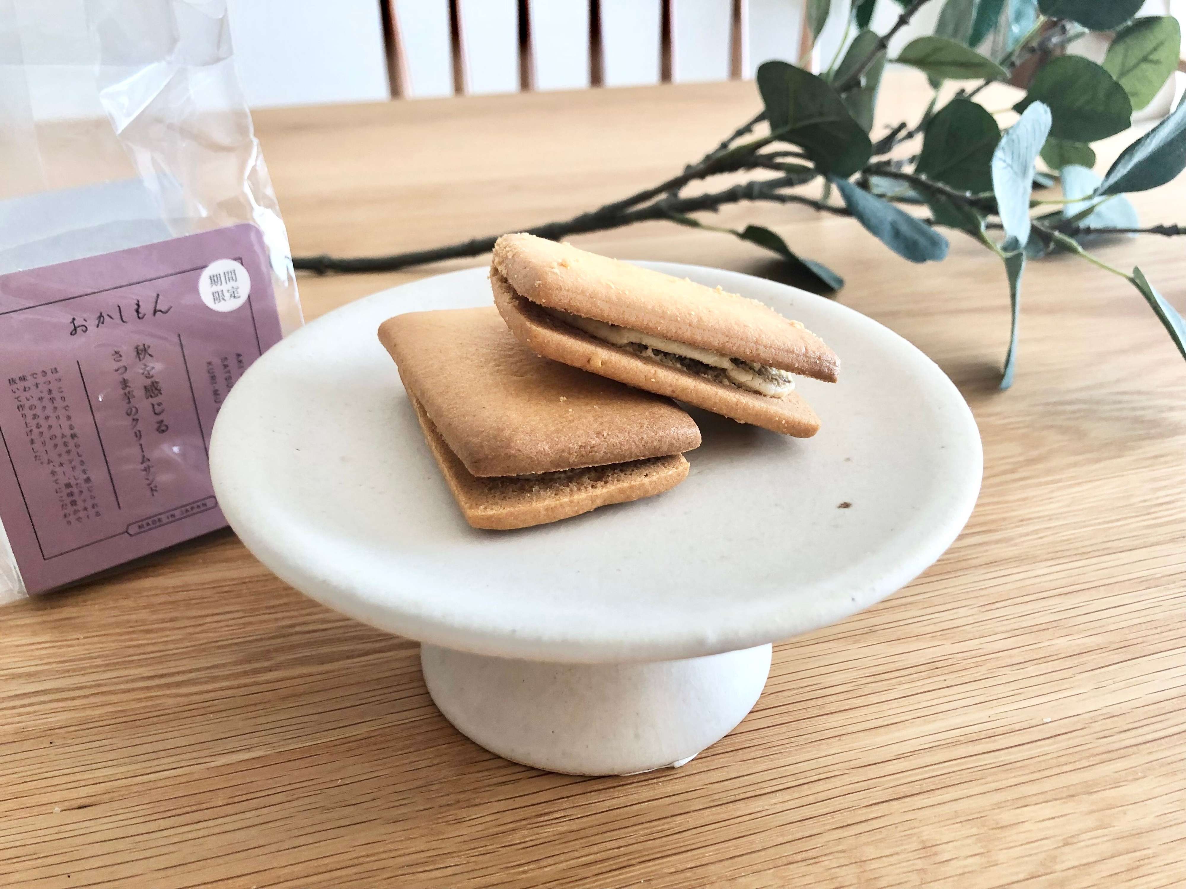 こちらの商品は秋の味覚である、さつま芋のクリームをクッキーで挟んだクッキーサンドです。