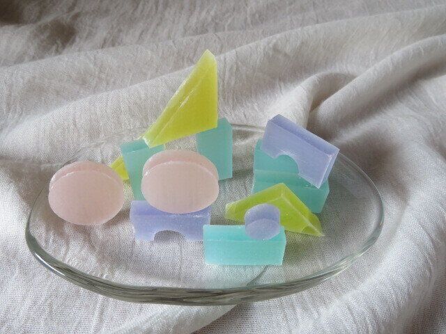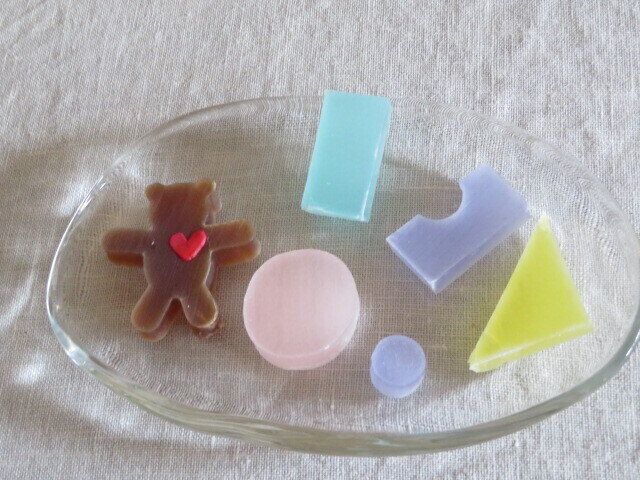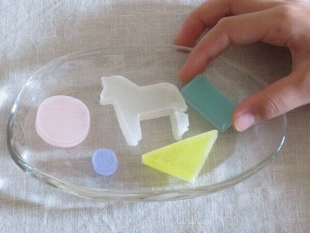 積み木の形や動物の形があるのが特徴的で、普通の琥珀糖よりもさらに映える姿です。