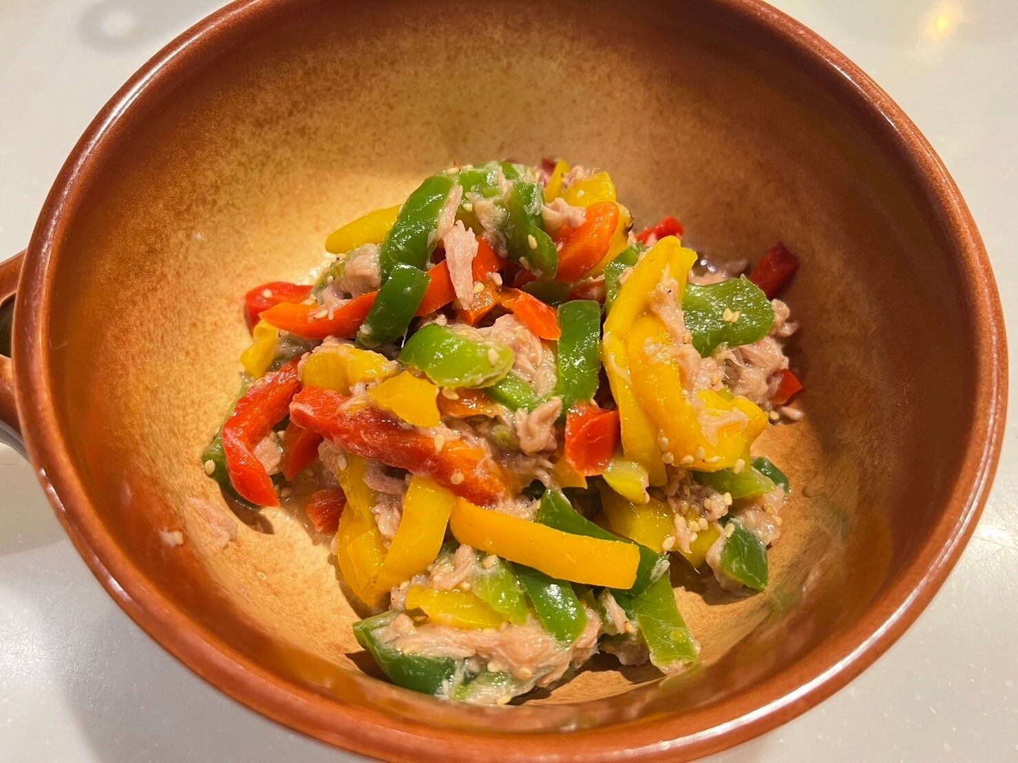 1.パプリカを耐熱ボウルに入れ、ラップをして600Wのレンジで3分加熱する。