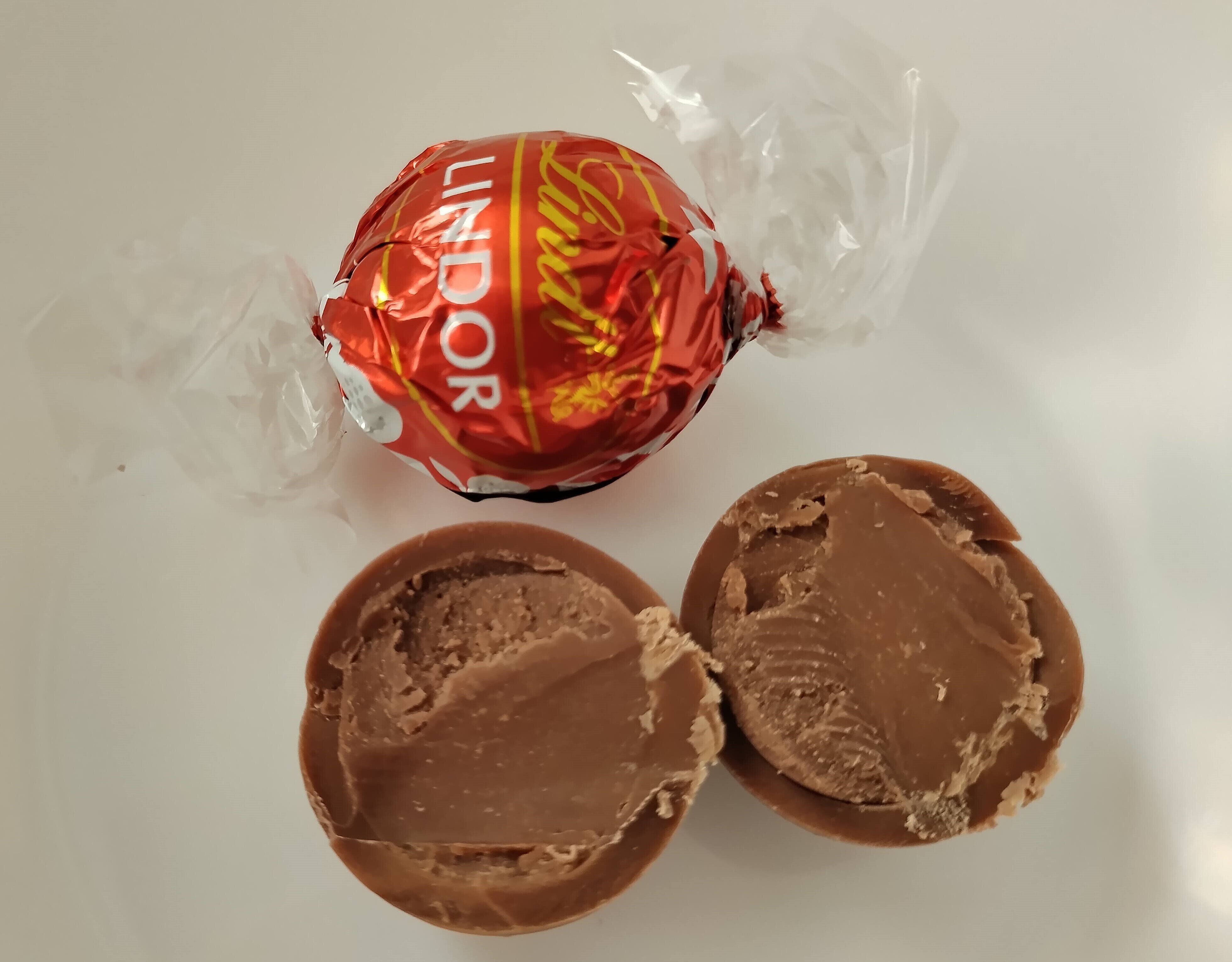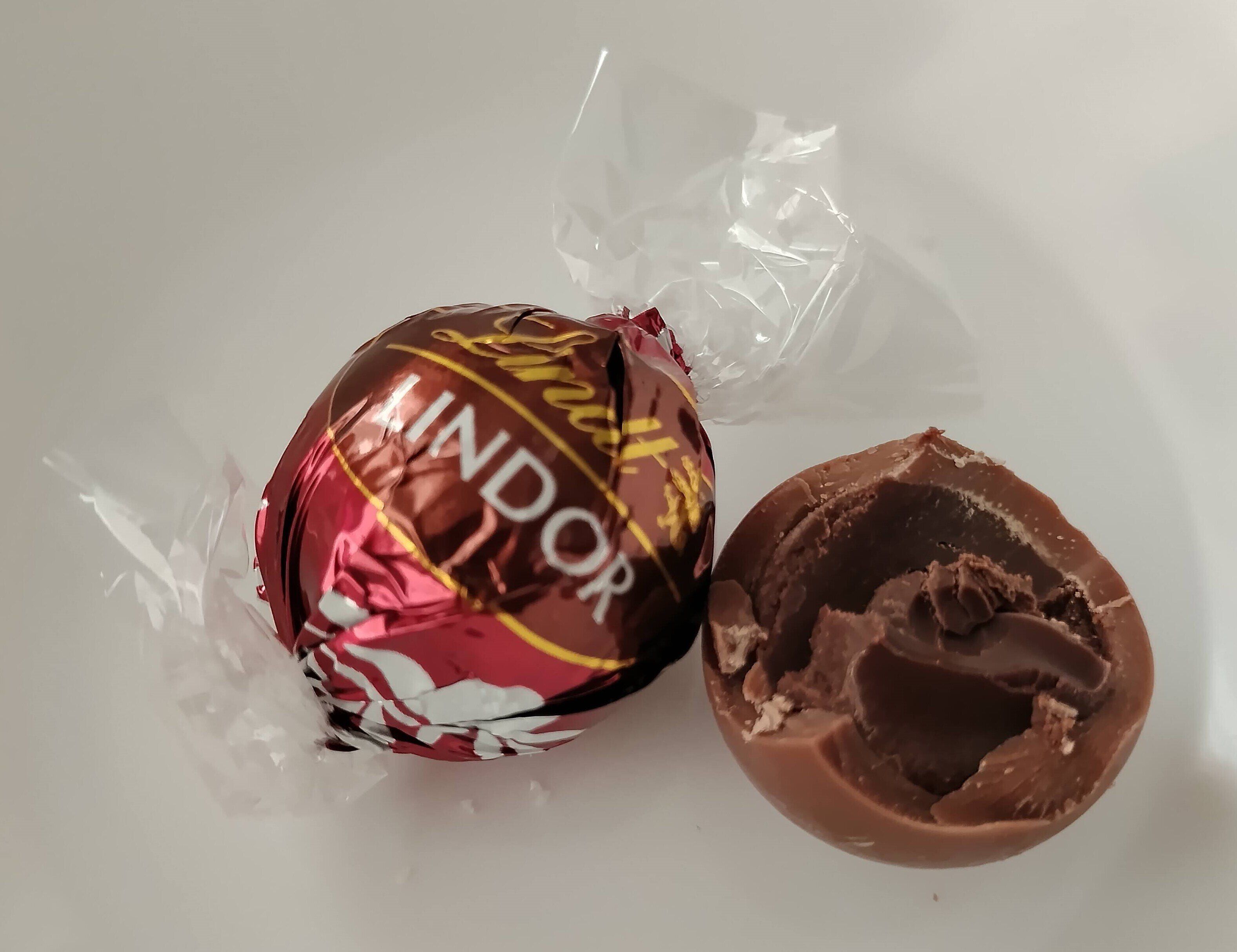 一番ベーシックな「ミルク」。リンドールと言えばミルクが一番!というかたも多いと思います。フィリングもシェルもミルク味のまったりまろやかなチョコレート。我が家では一番子ども受けがよかったです。