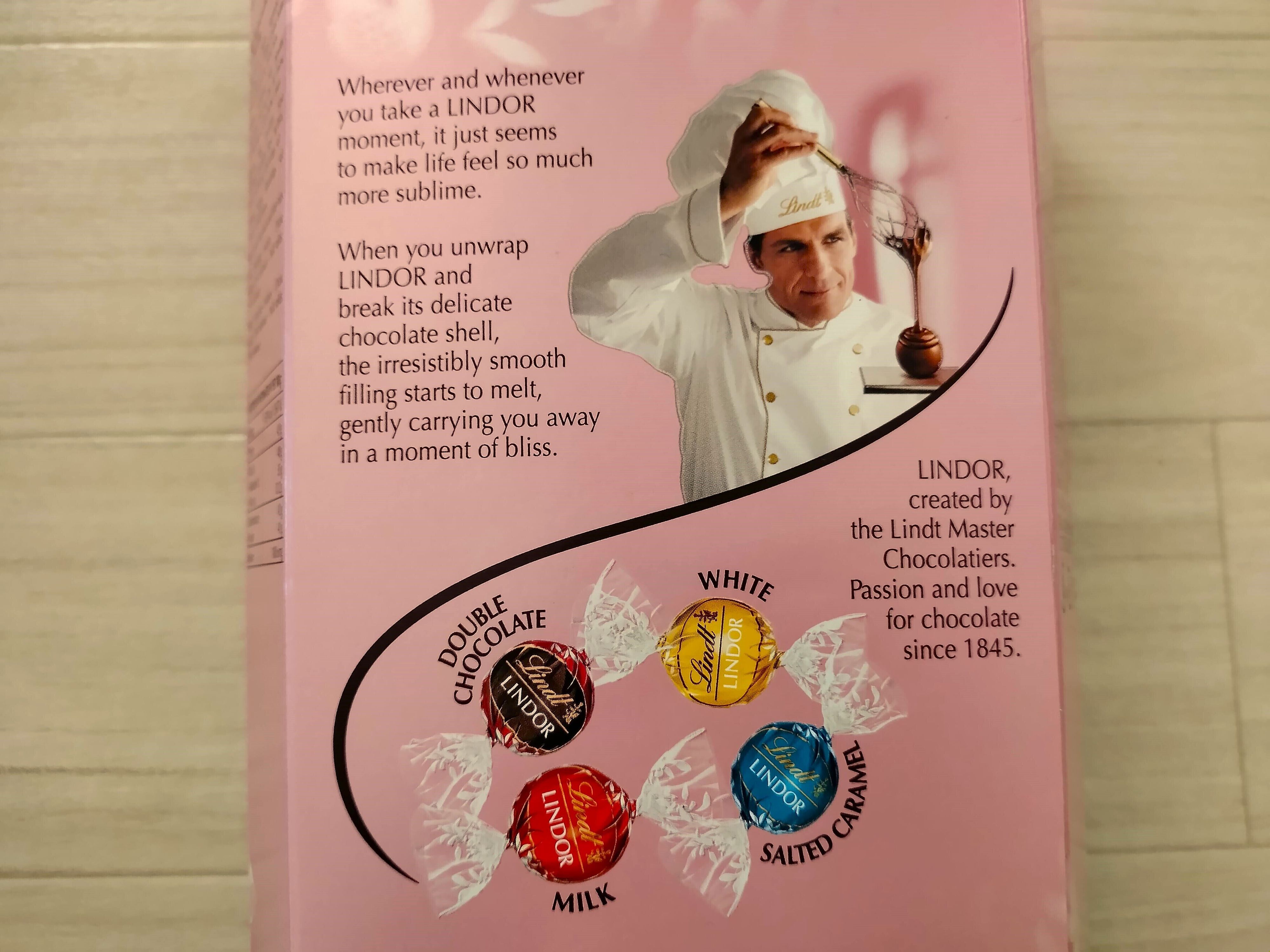 リンドール ピンク アソーテッドには「ミルク」「ソルテッドキャラメル」「ホワイト」「ダブルチョコレート」の4種類のフレーバーが入っています。