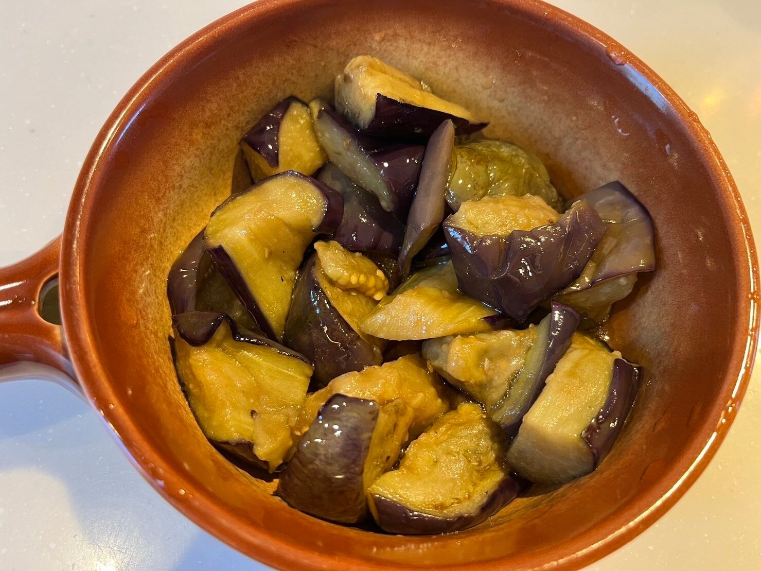 揚げなすなので、レンジで加熱すると油分が出てきます。