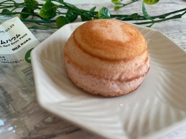 まず、丸い形のバウムクーヘンが驚きですが、色もピンク!ダブルで驚きました。