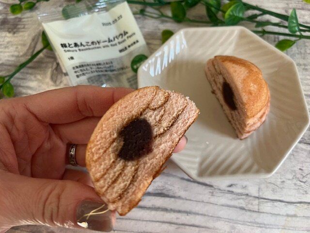 【無印良品】では店頭がピンクでいっぱいでした。桜を使った商品がたくさん並んでして、どれも目新しいものばかり。桜って結構クセがあったりしますが、このバウムクーヘンはほんのり桜の味、香りがして中のあんことも相性バッチリ。すごくおいしかったです。
