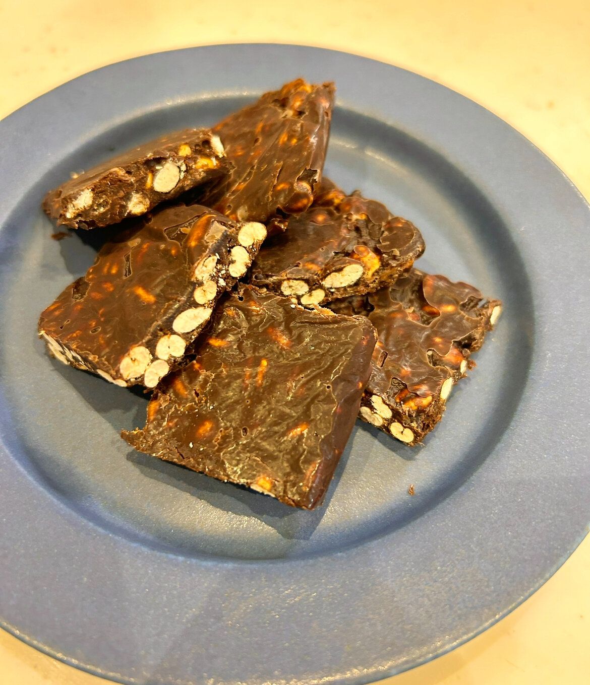 4. 冷蔵庫に入れて30分ほど冷やし固め、食べやすい大きさに切る。