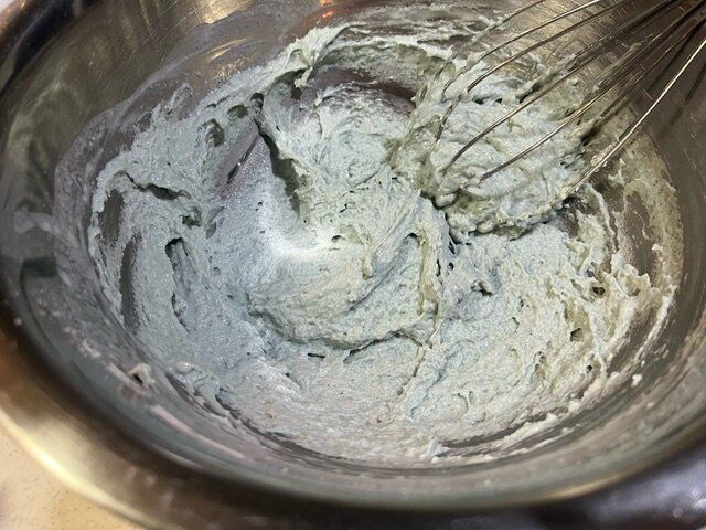 ボウルに入れてみると、粉そのものが青い!うっすら青い。ここに水を入れるだけ。