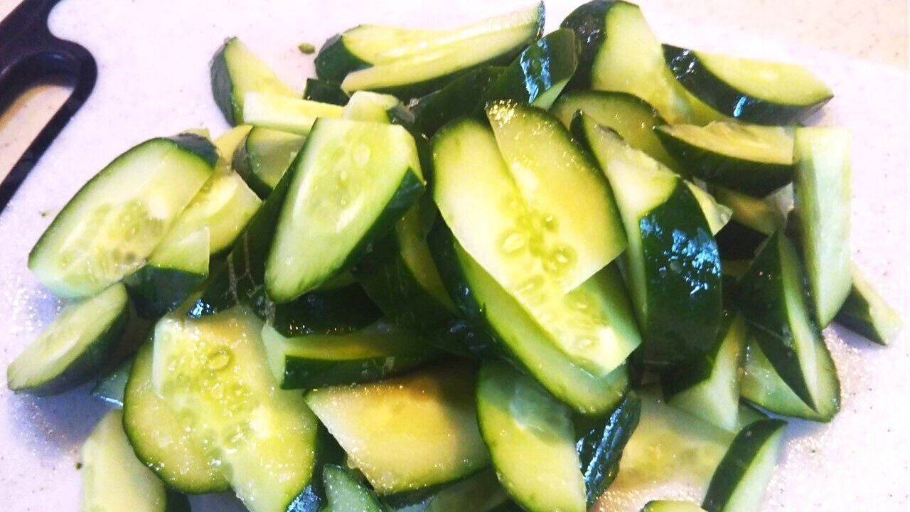 1. きゅうりは、洗って長めの乱切りにする(表面積が大きくなればOK)。