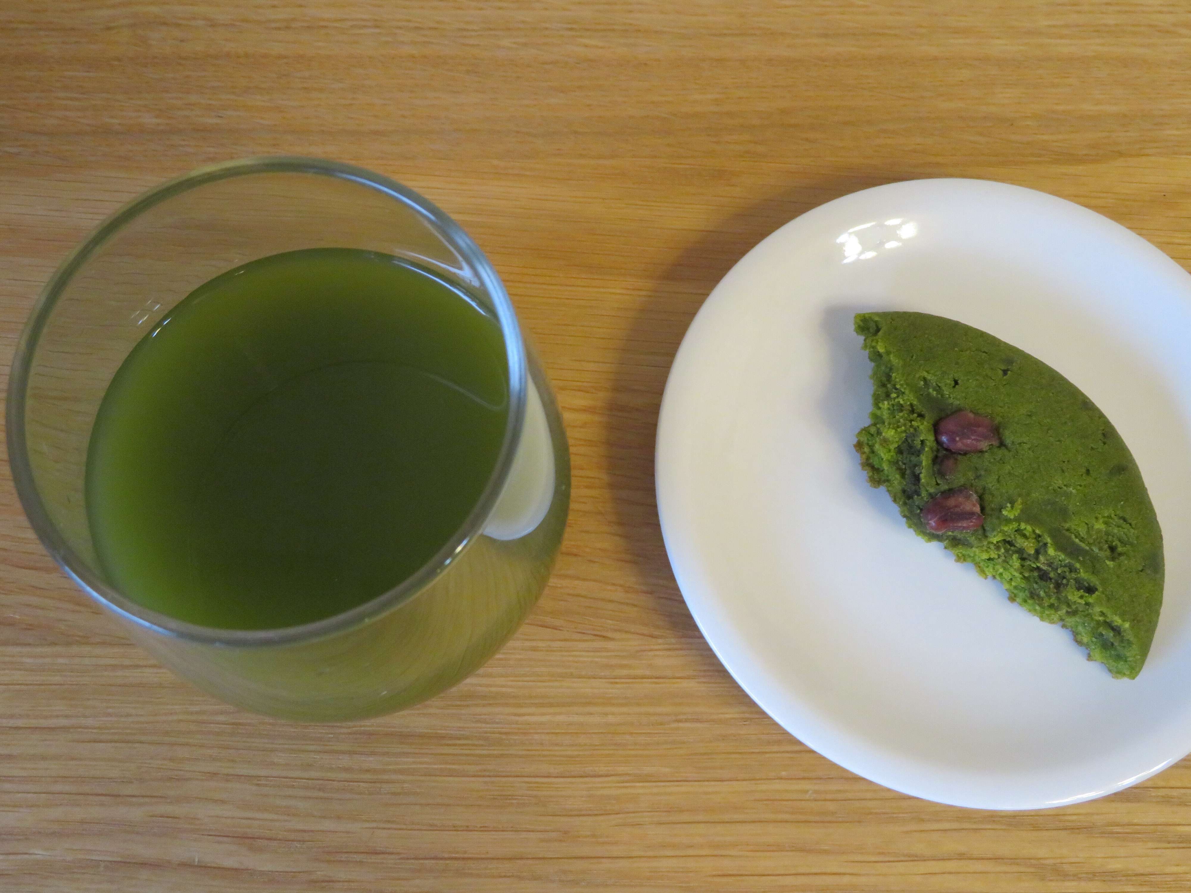 苦いグリーンティーを飲んでから食べると、クッキーの自然な甘さが際立ちます。