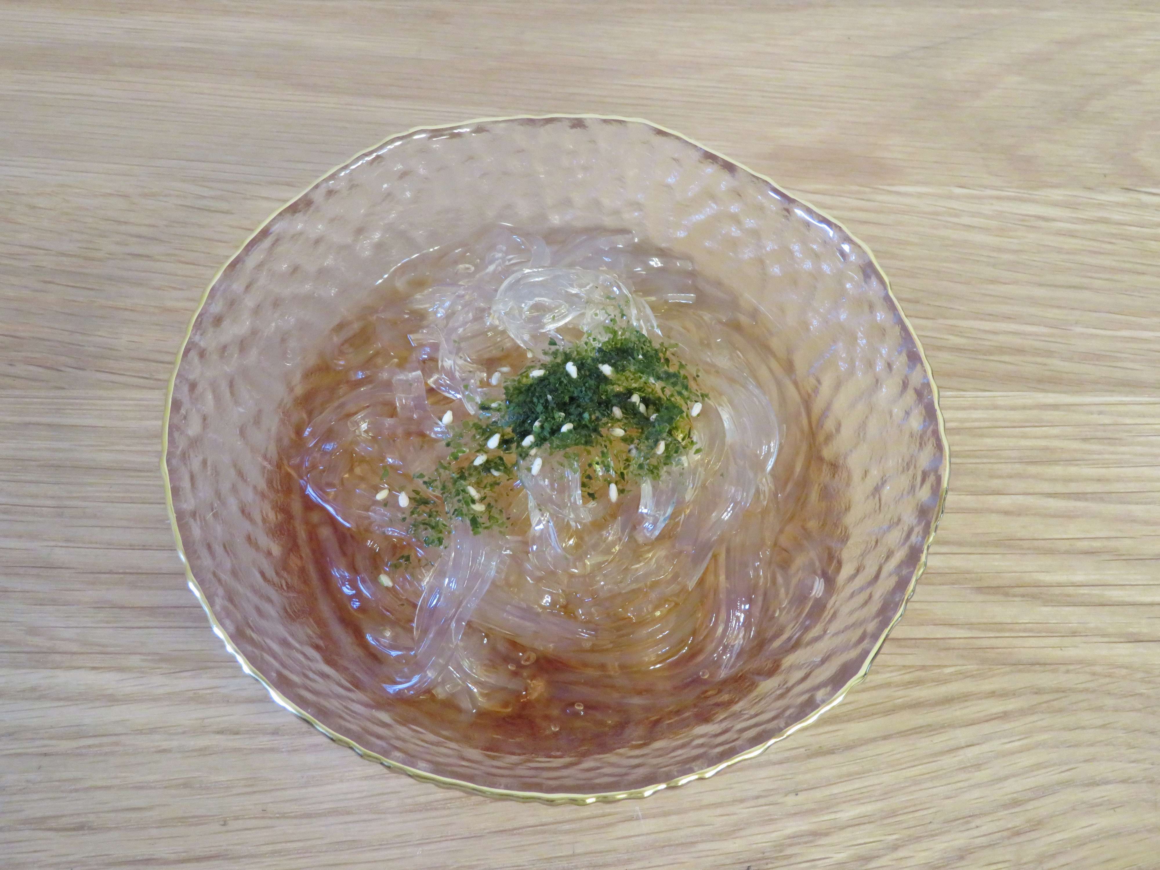 関東のところてんは酢じょう油がかかっていてさっぱりとした味です。
