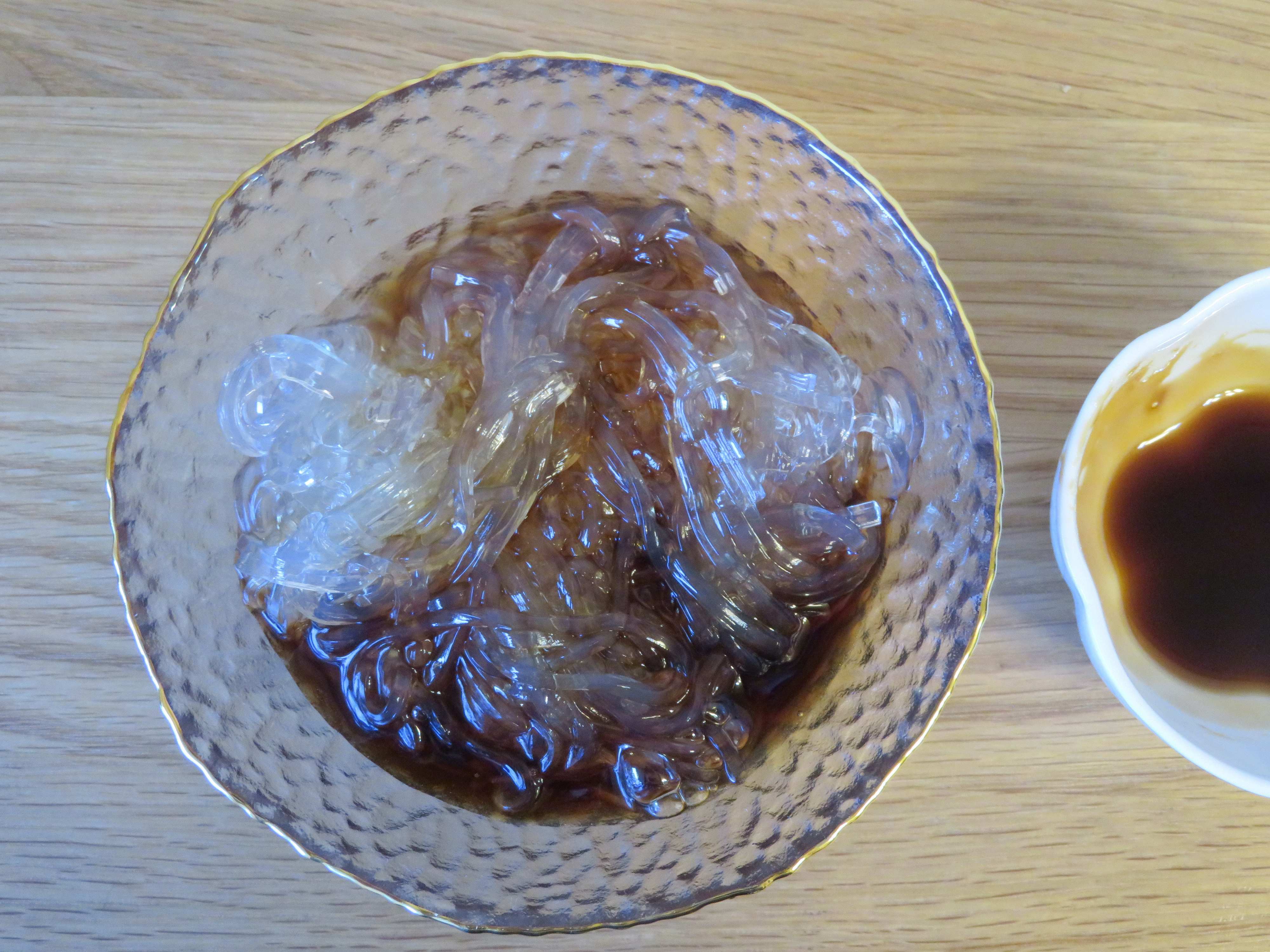 それに対して、関西のところてんは黒みつがかかっています。