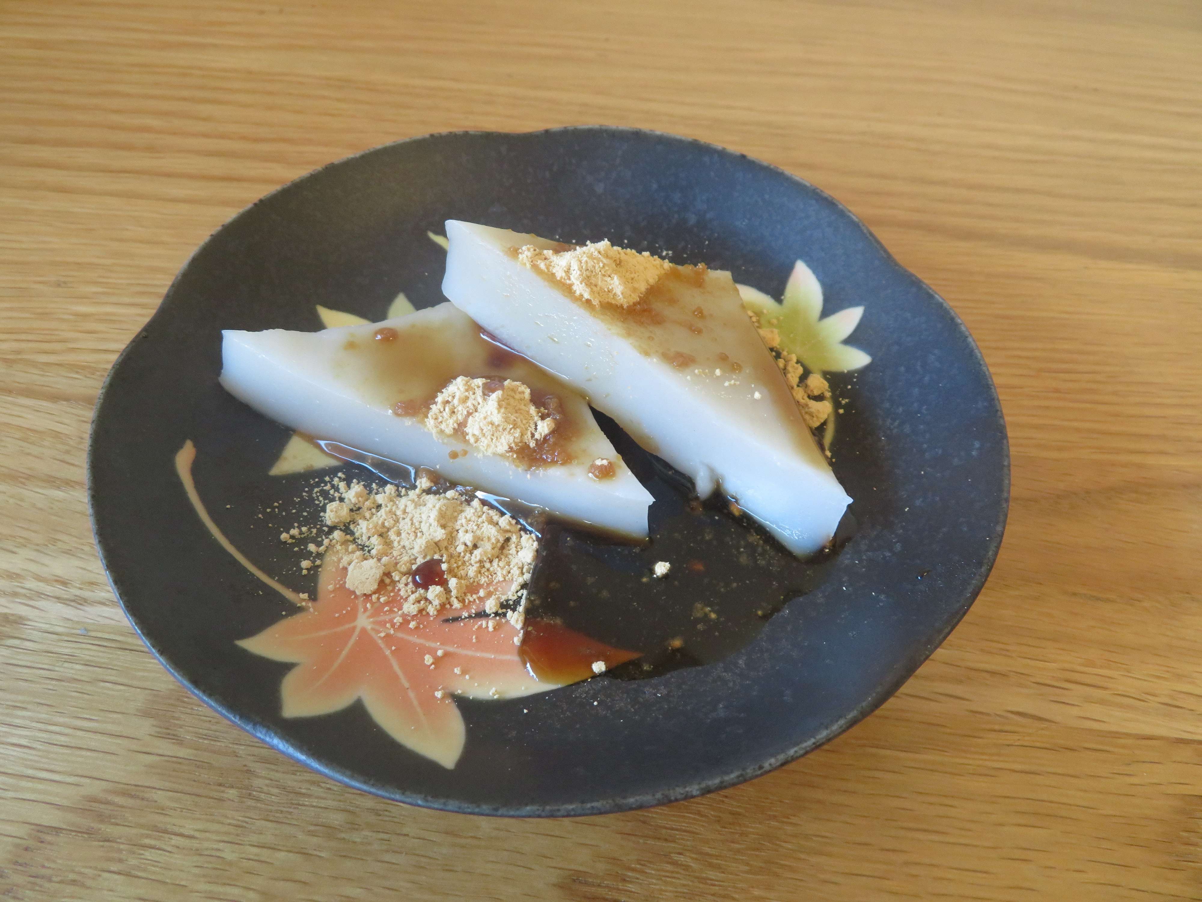 ただ、写真のものは少し葛粉も入った高級なものだったらしく、過去に食べた関東風くず餅に比べると食べやすかったです。