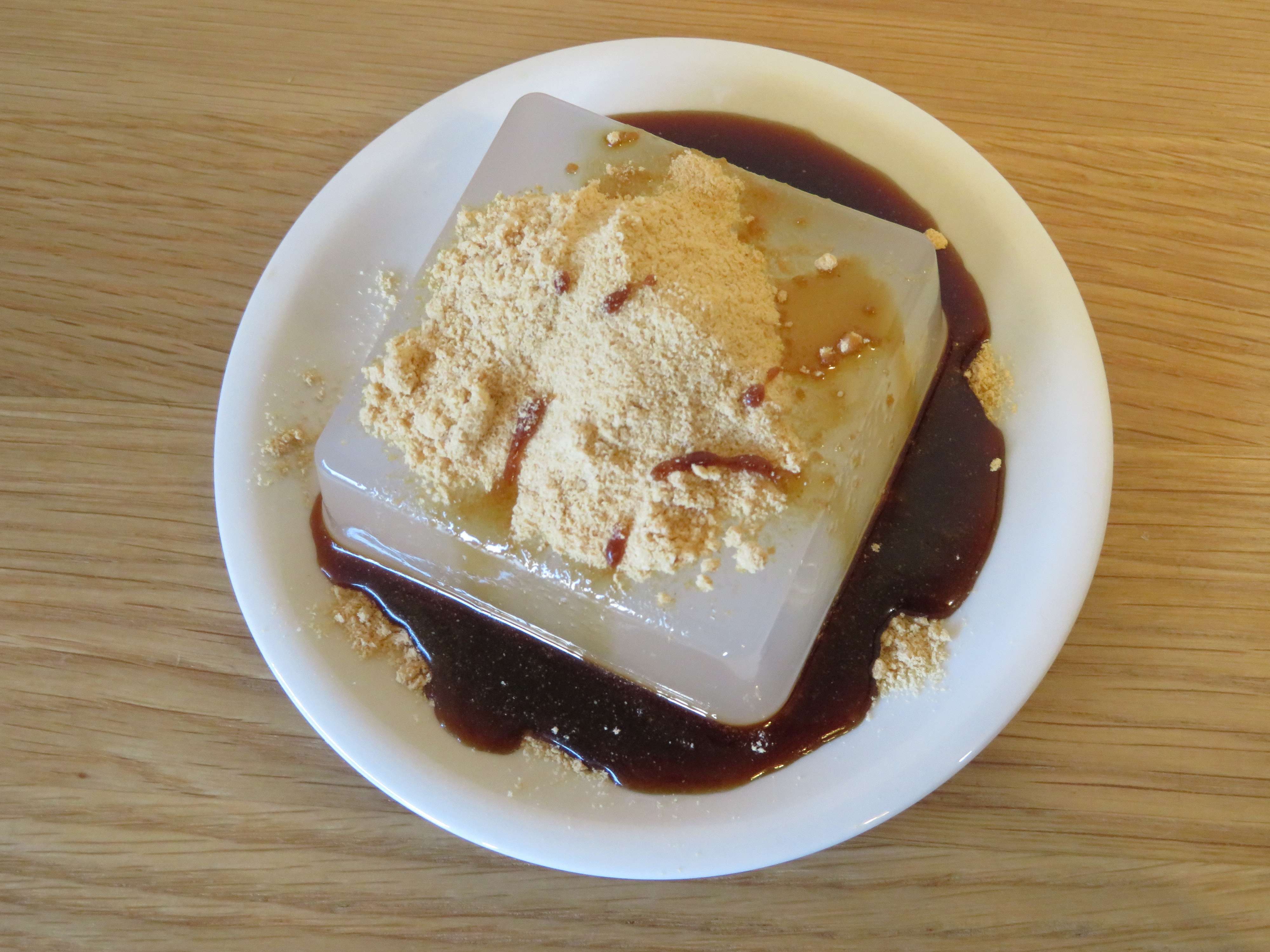 「くず餅ってもう少し透き通っていなかったっけ?これ、やけに白く濁ってるな」
